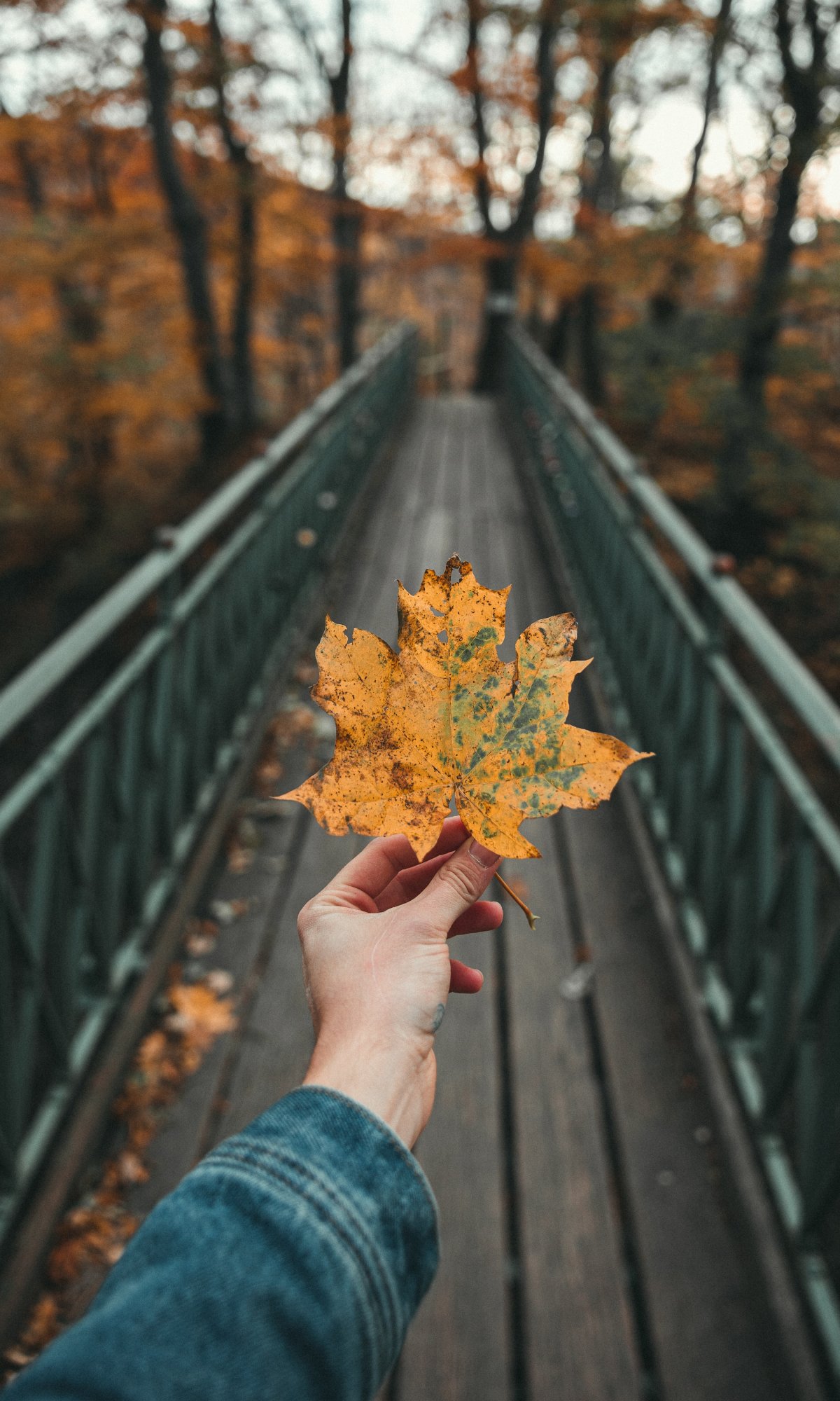 Обои: осенний лист, клен, мост, осень, лес - 1200x2000