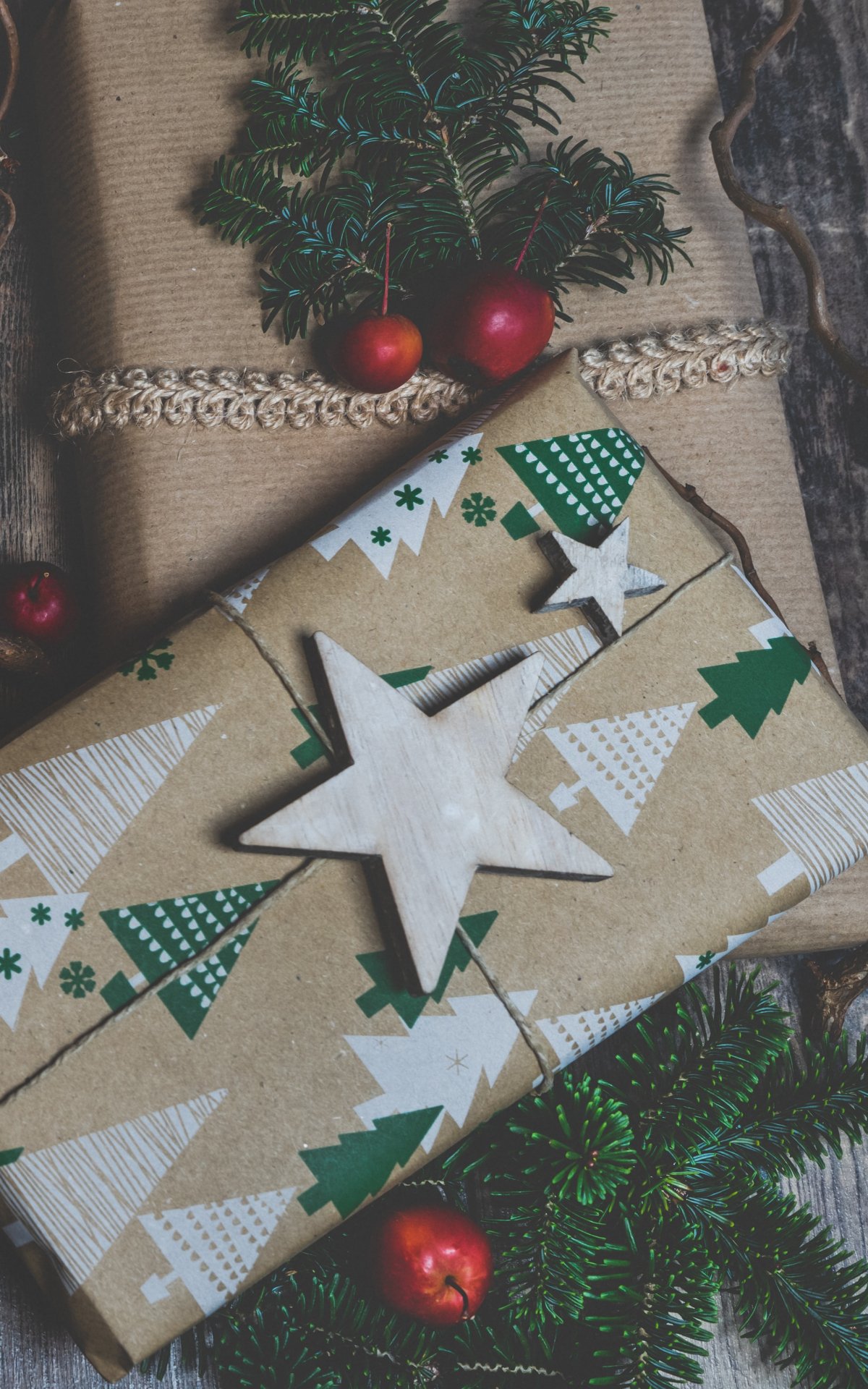 Обои: крафтовая бумага, подарок, Новый год, - 1200x1920