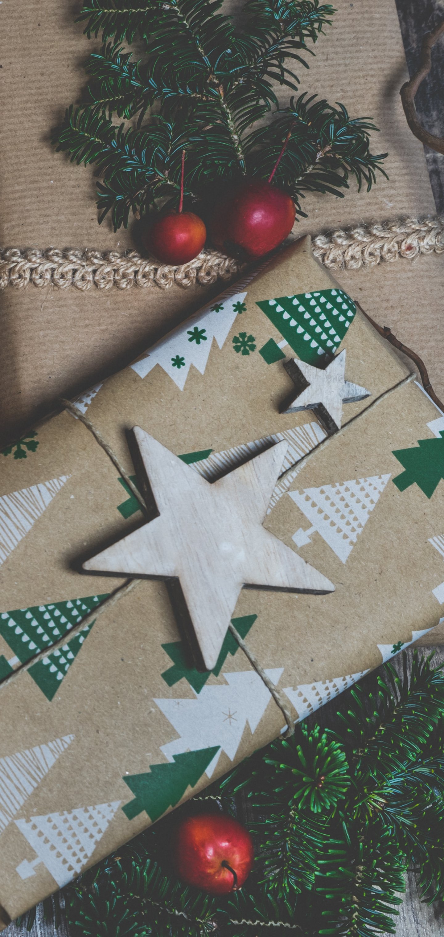 Обои: крафтовая бумага, подарок, Новый год, - 1440x3040