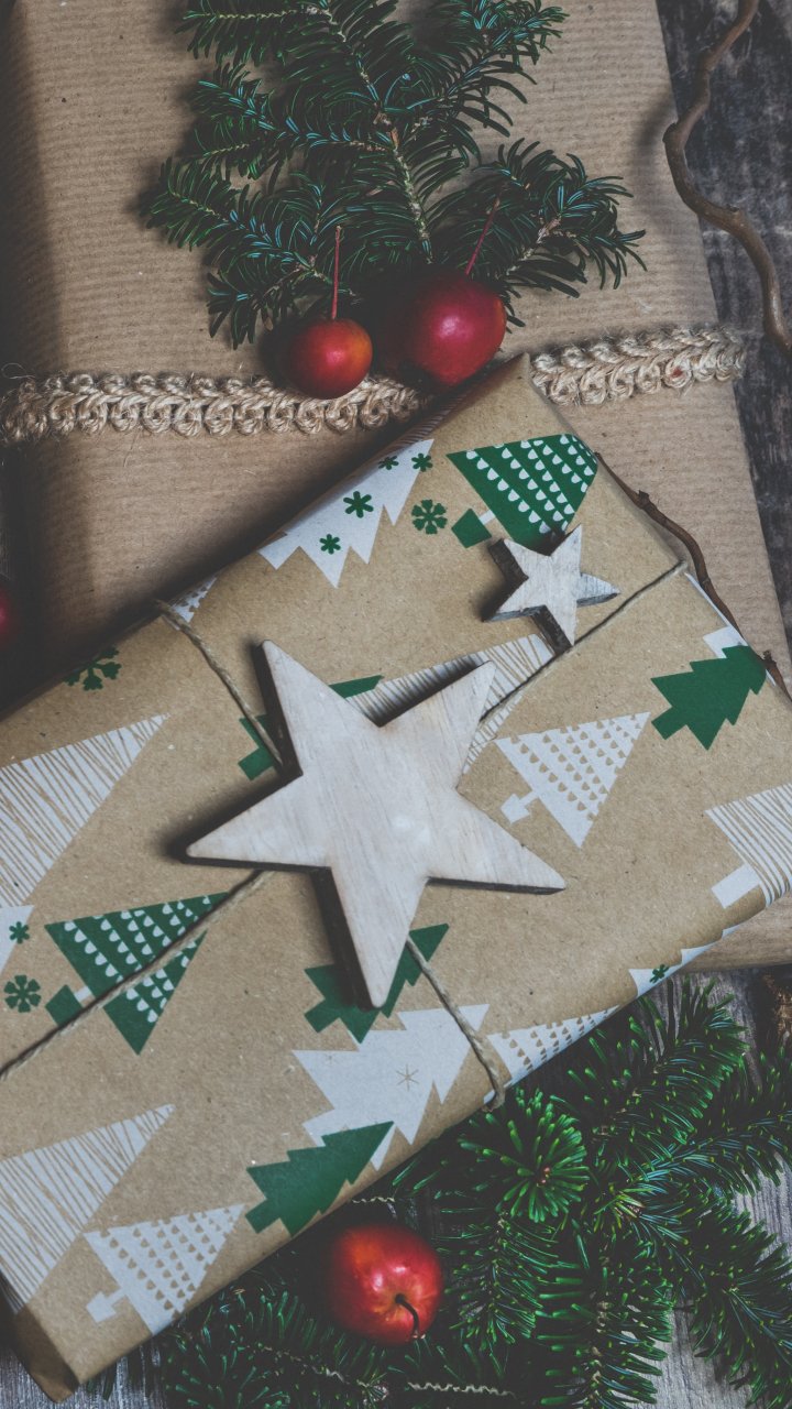 Обои: крафтовая бумага, подарок, Новый год, - 720x1280
