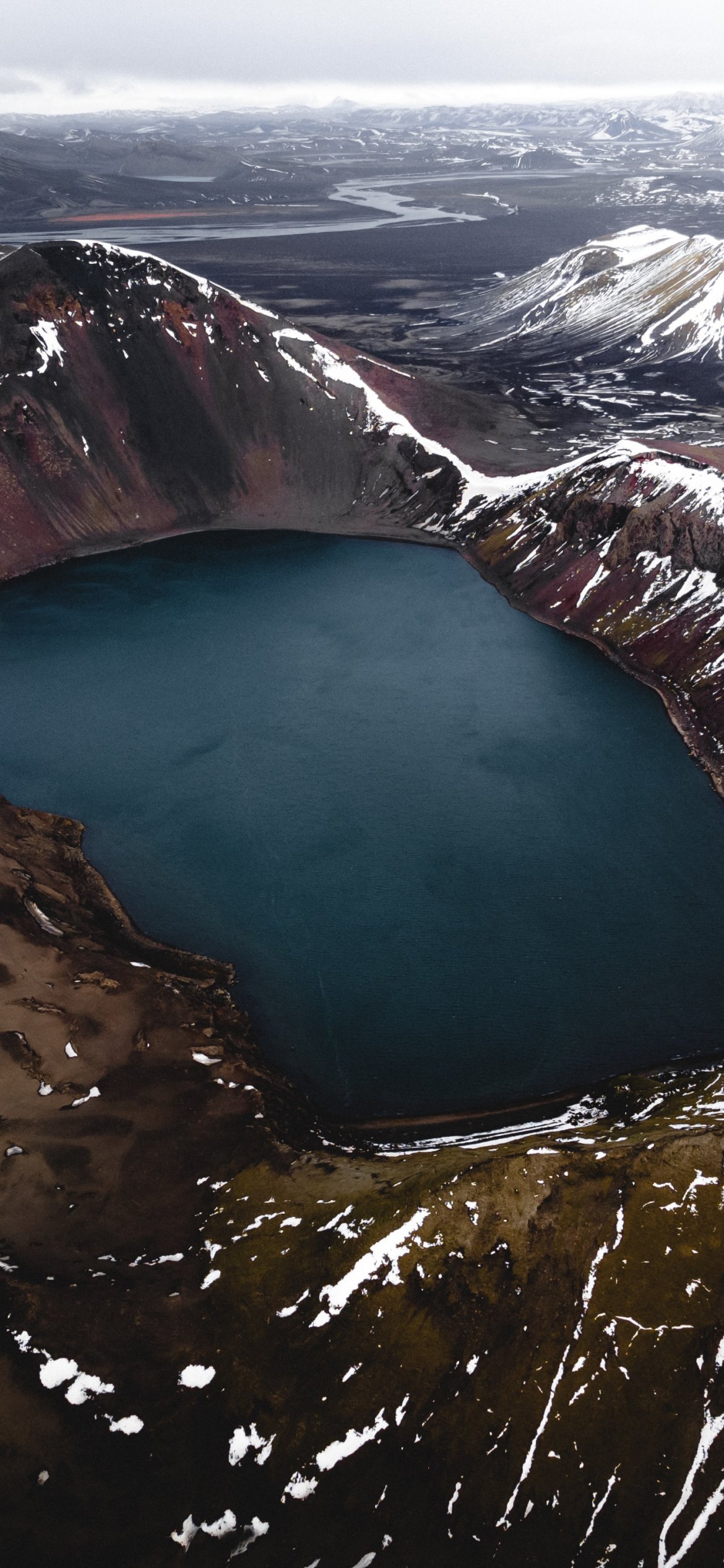 Обои: озеро, снег, горы, снежные горы - 1170x2532