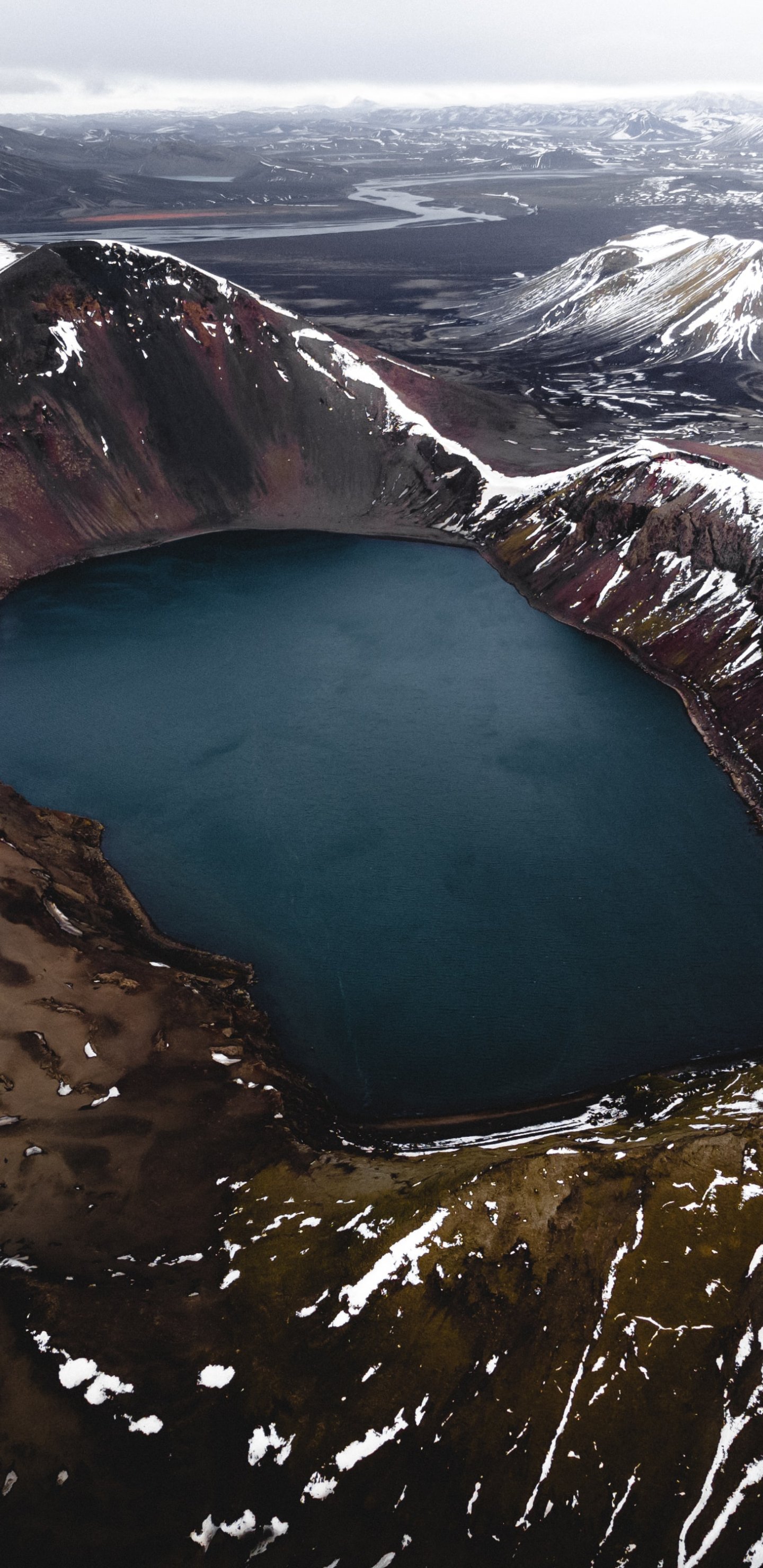 Обои: озеро, снег, горы, снежные горы - 1440x2960