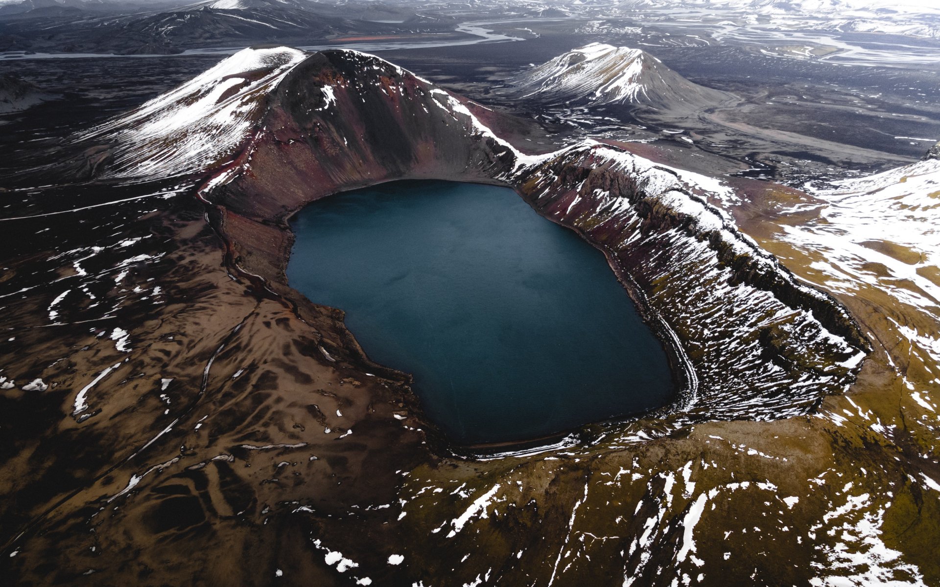 Исландия, горы, озеро, снег