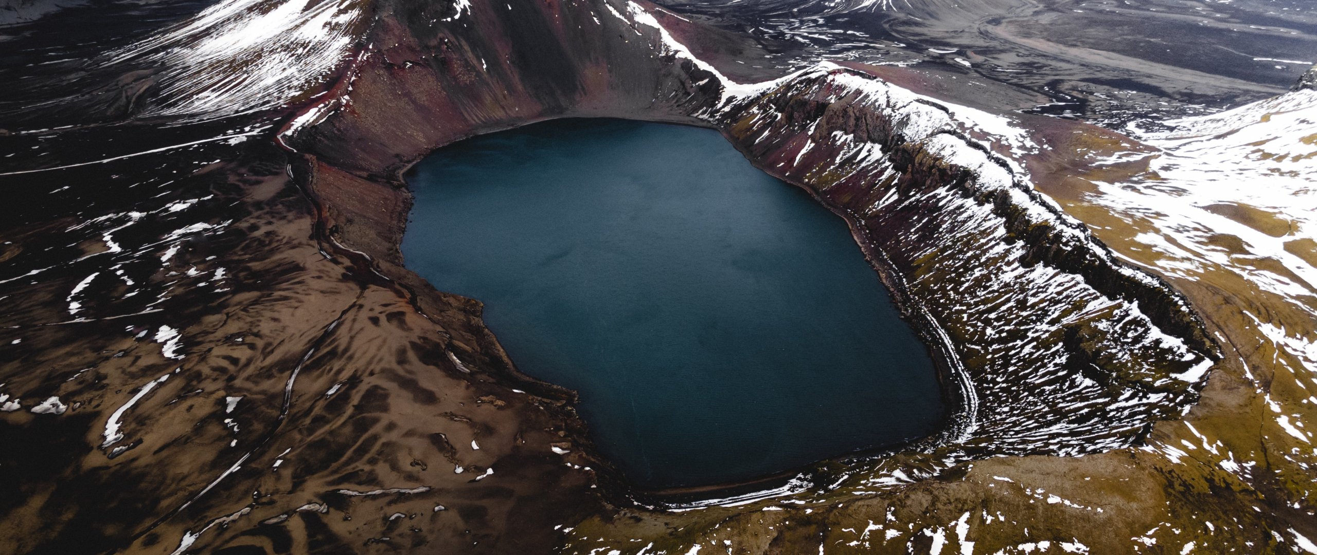 Исландия, горы, озеро, снег