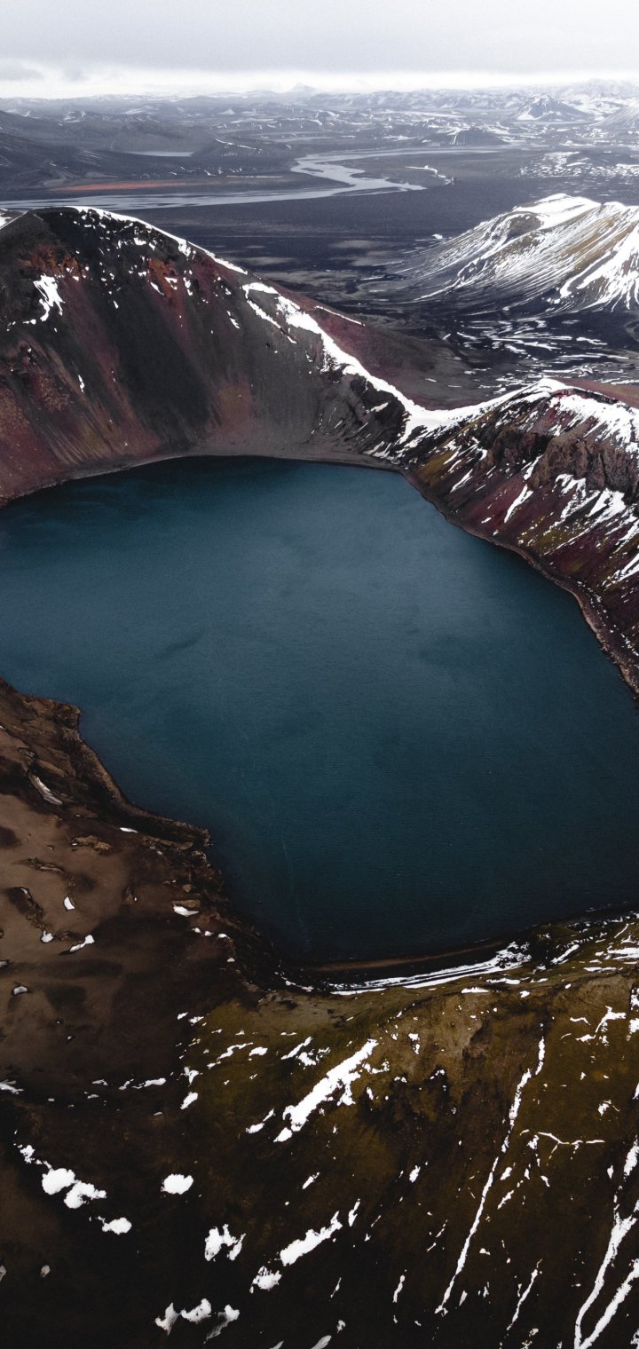 Обои: озеро, снег, горы, снежные горы - 720x1520
