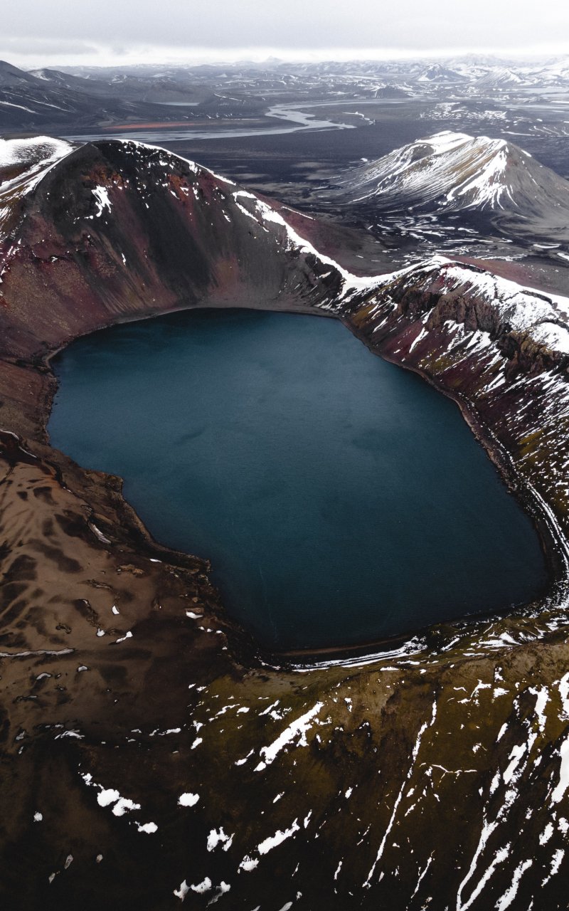 Исландия, горы, озеро, снег