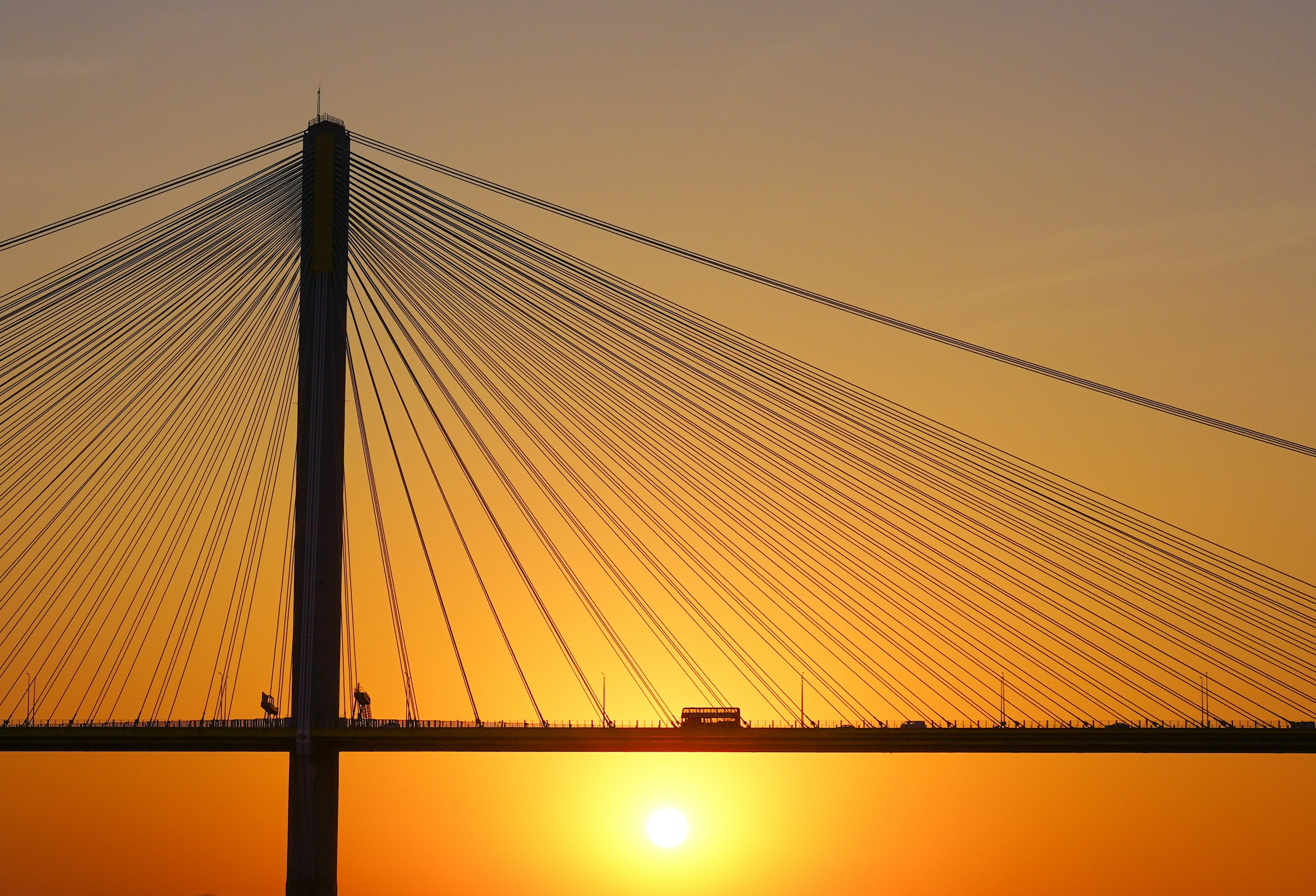 Обои: мост, закат, автобус, дорога - 3007x2048