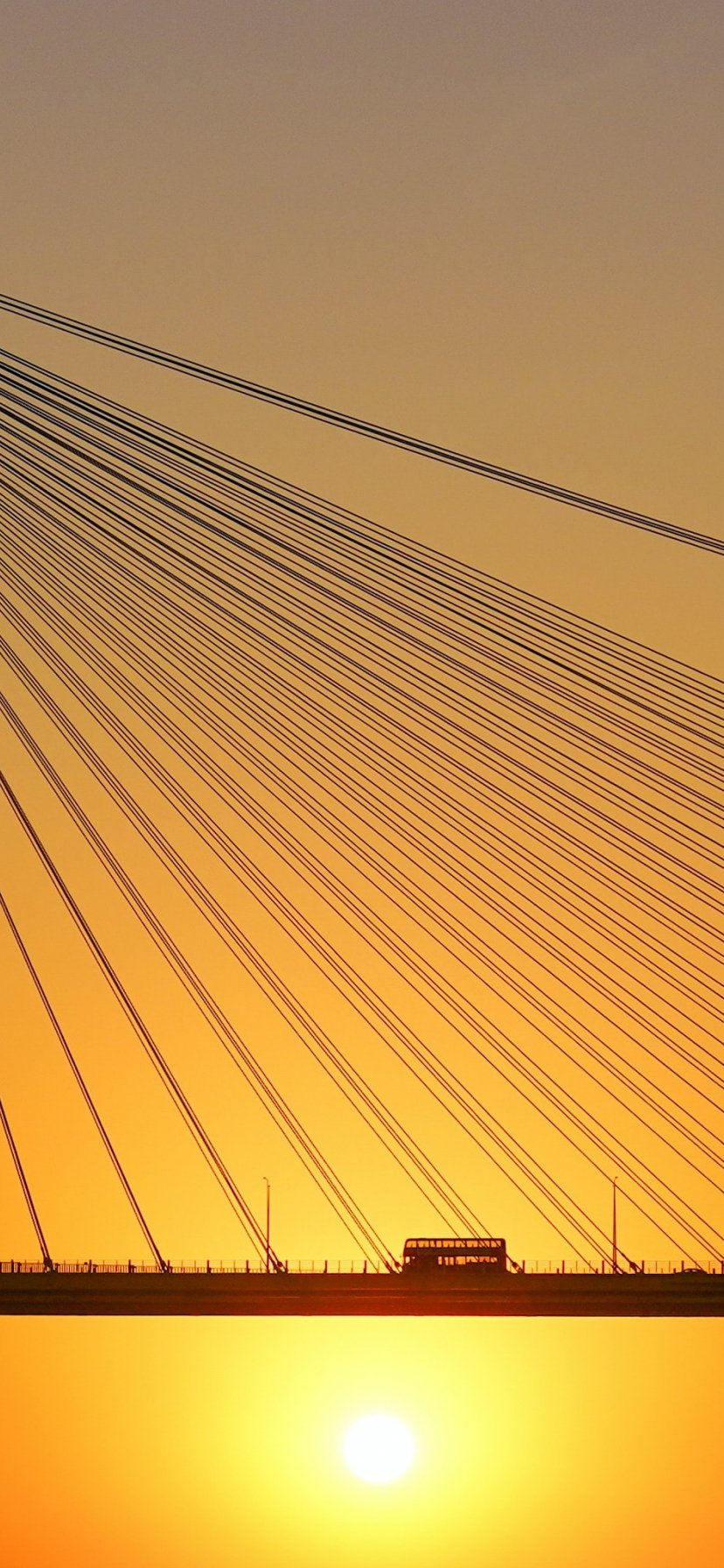 Обои: мост, закат, автобус, дорога - 828x1792