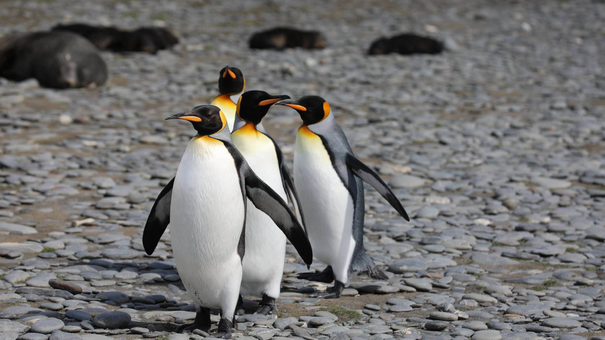 Обои: пингвины, дикая природа, камни - 2048x1152
