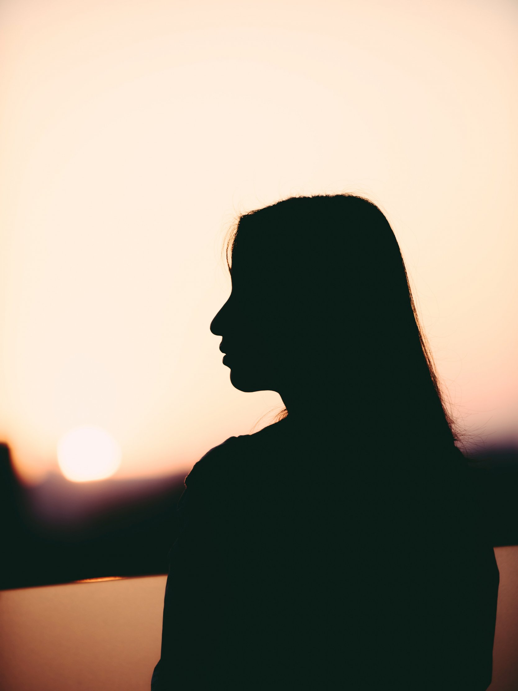 Обои: девушка, силуэт, закат, профиль - 1668x2224