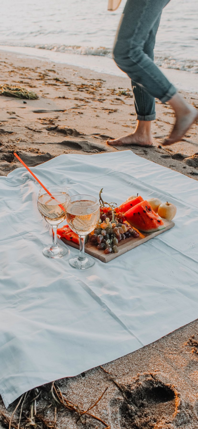 Обои: пикник, игристое, пляж, песок, романтика - 828x1792