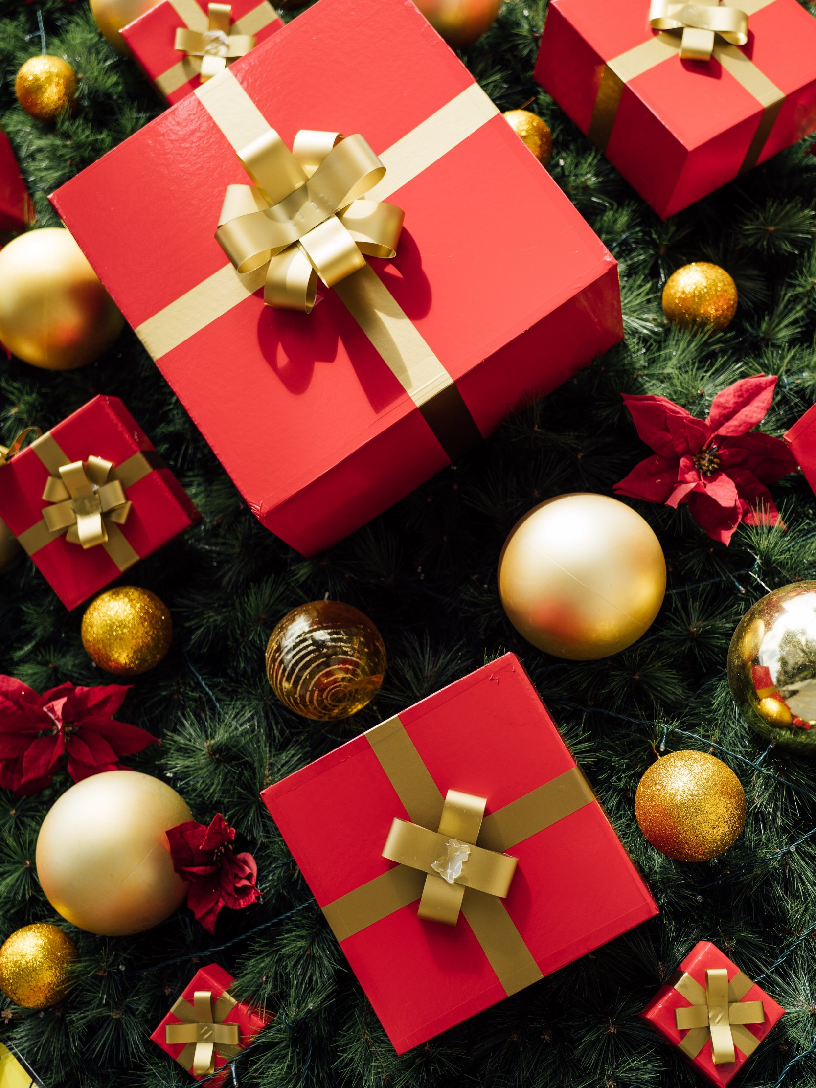 подарки, праздник, шарики, красный
