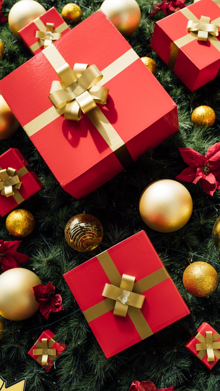 Обои: подарок, красный, бант, - 750x1334