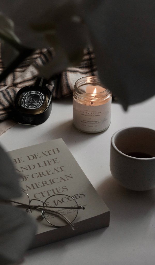 Обои: свеча, книга, очки, эстетика, минимализм - 600x1024