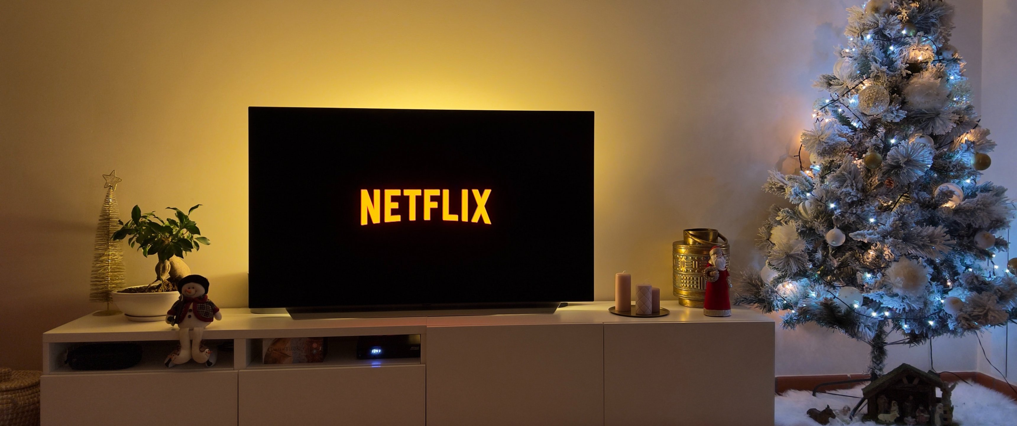 Обои: нетфликс, елка, домашний уют, дом, вечер - 3440x1440