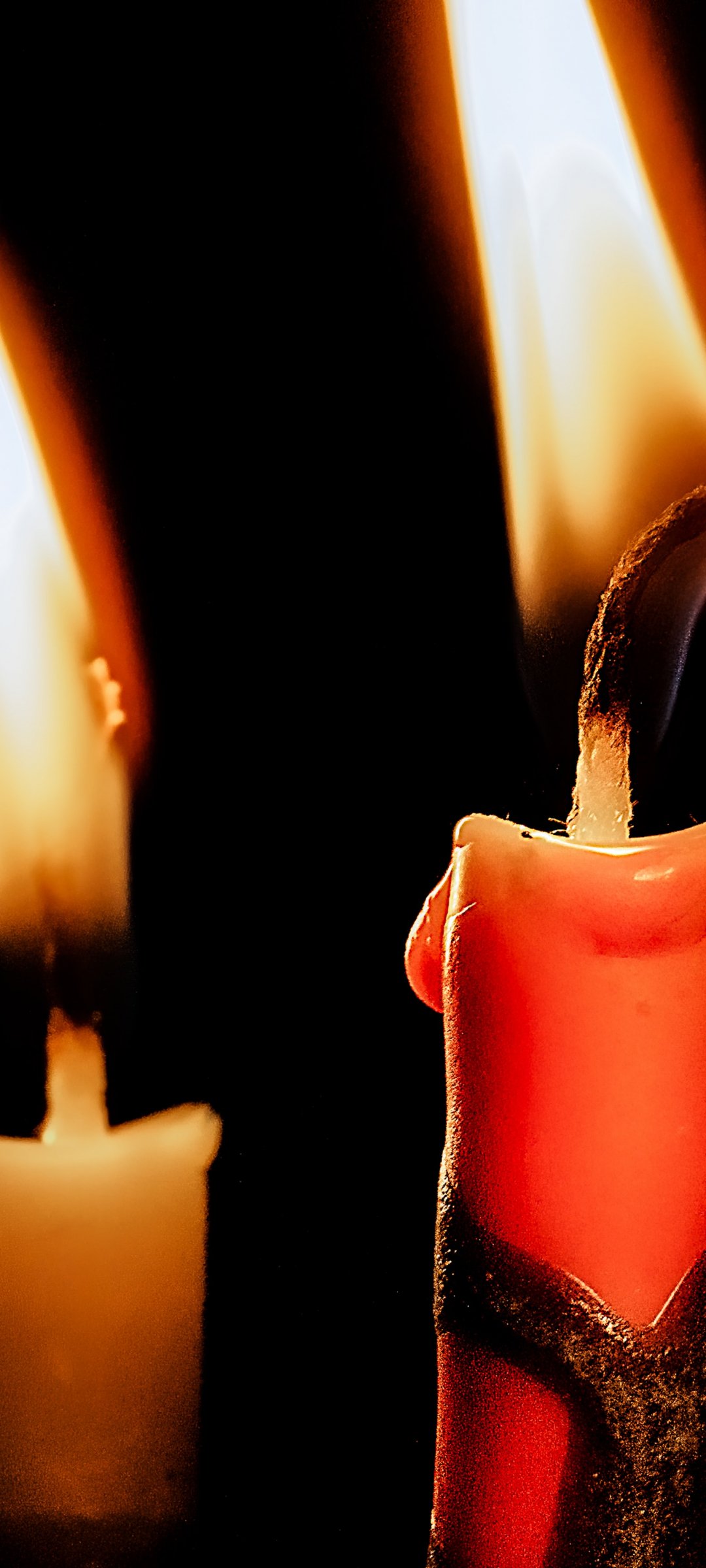 Обои: свечи, свеча, огонь, тепло, черный фон - 1080x2400