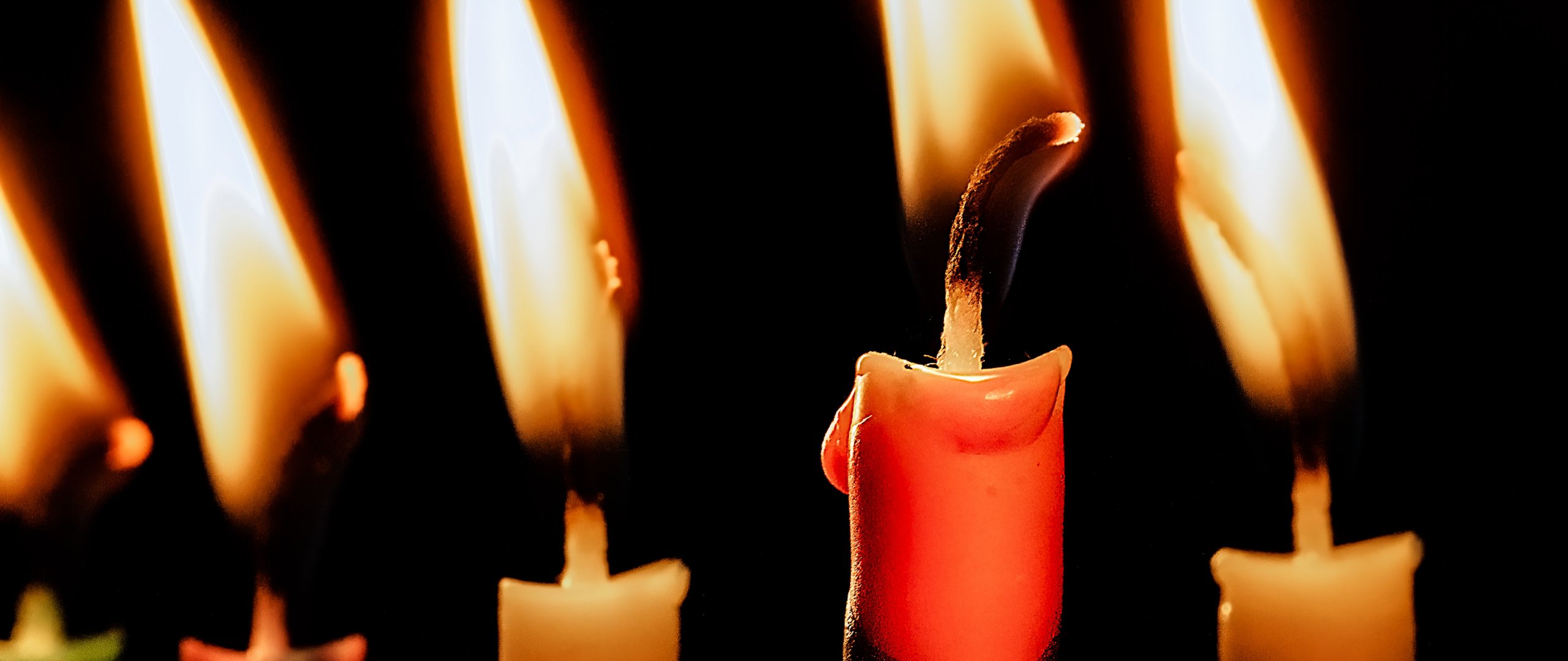 Обои: свечи, свеча, огонь, тепло, черный фон - 2560x1080