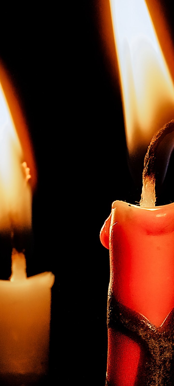 Обои: свечи, свеча, огонь, тепло, черный фон - 720x1600