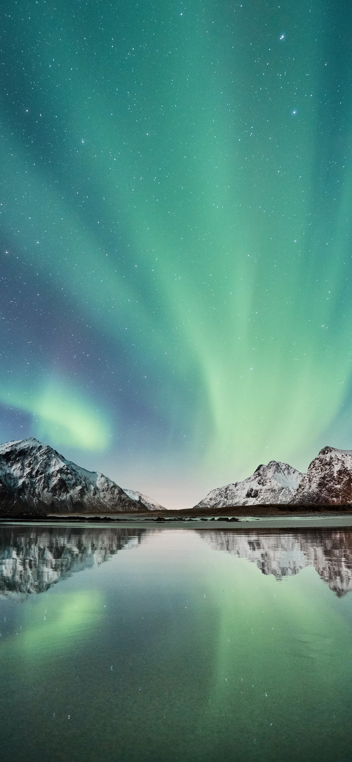 Обои: северное сияние, горы, озеро - 1170x2532