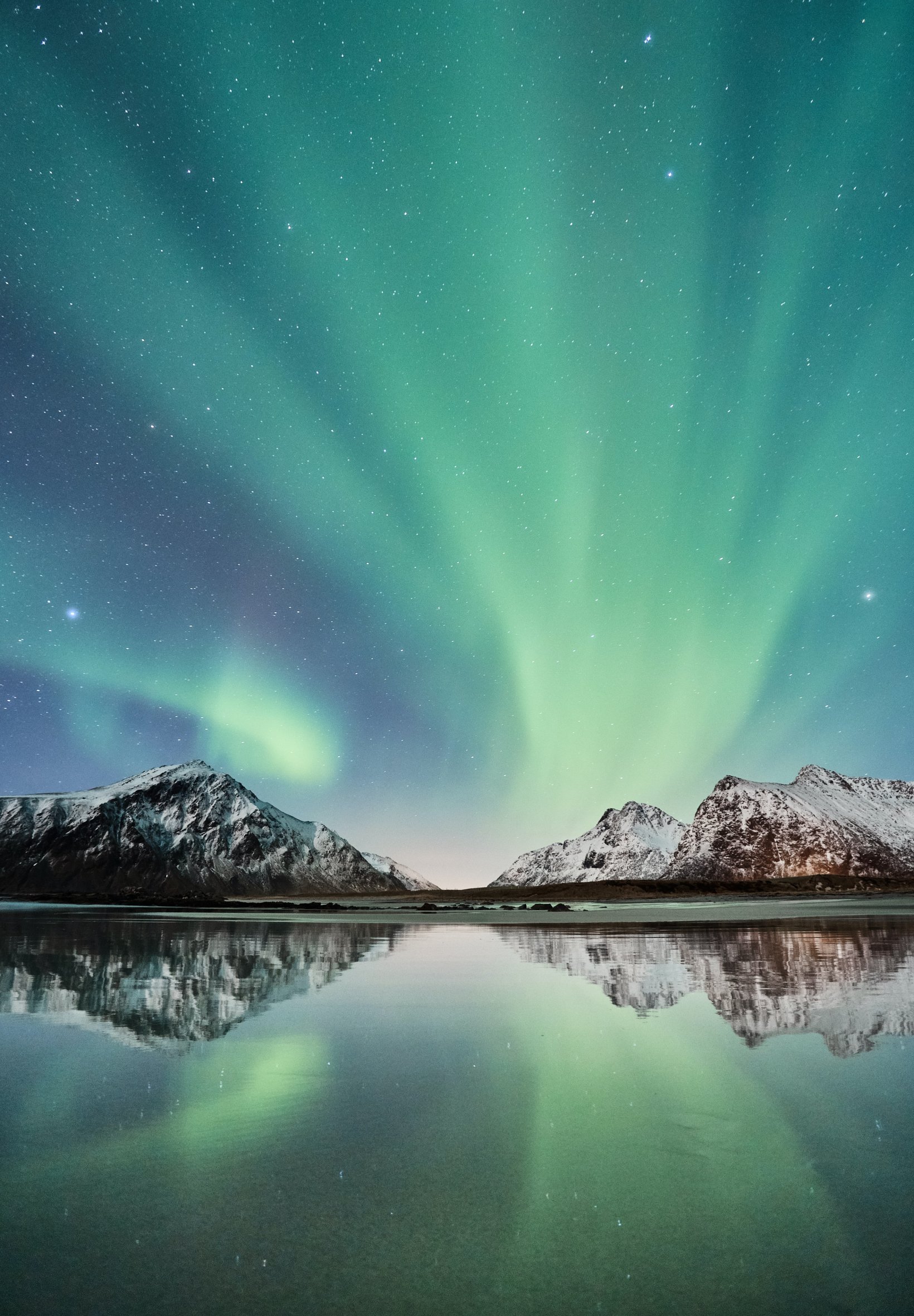 Обои: северное сияние, горы, озеро - 1640x2360
