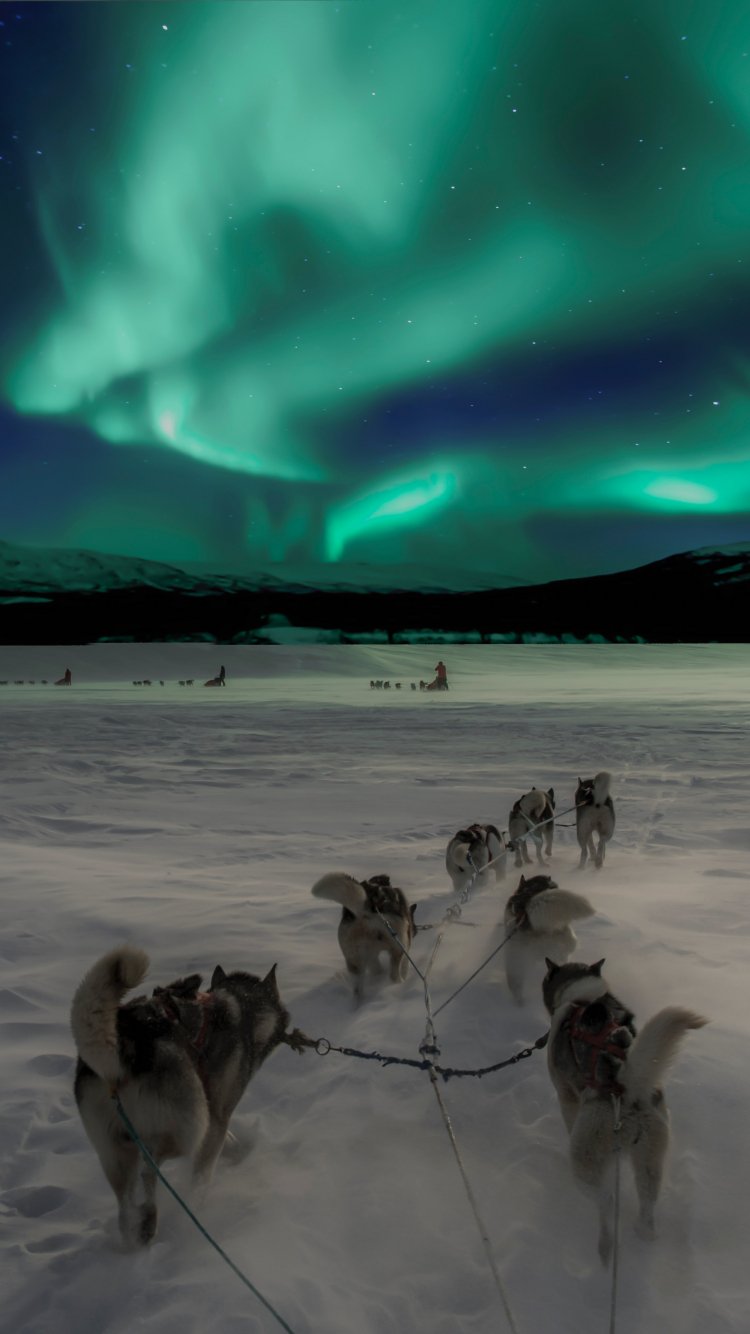 Обои: упряжка, север, снег - 750x1334