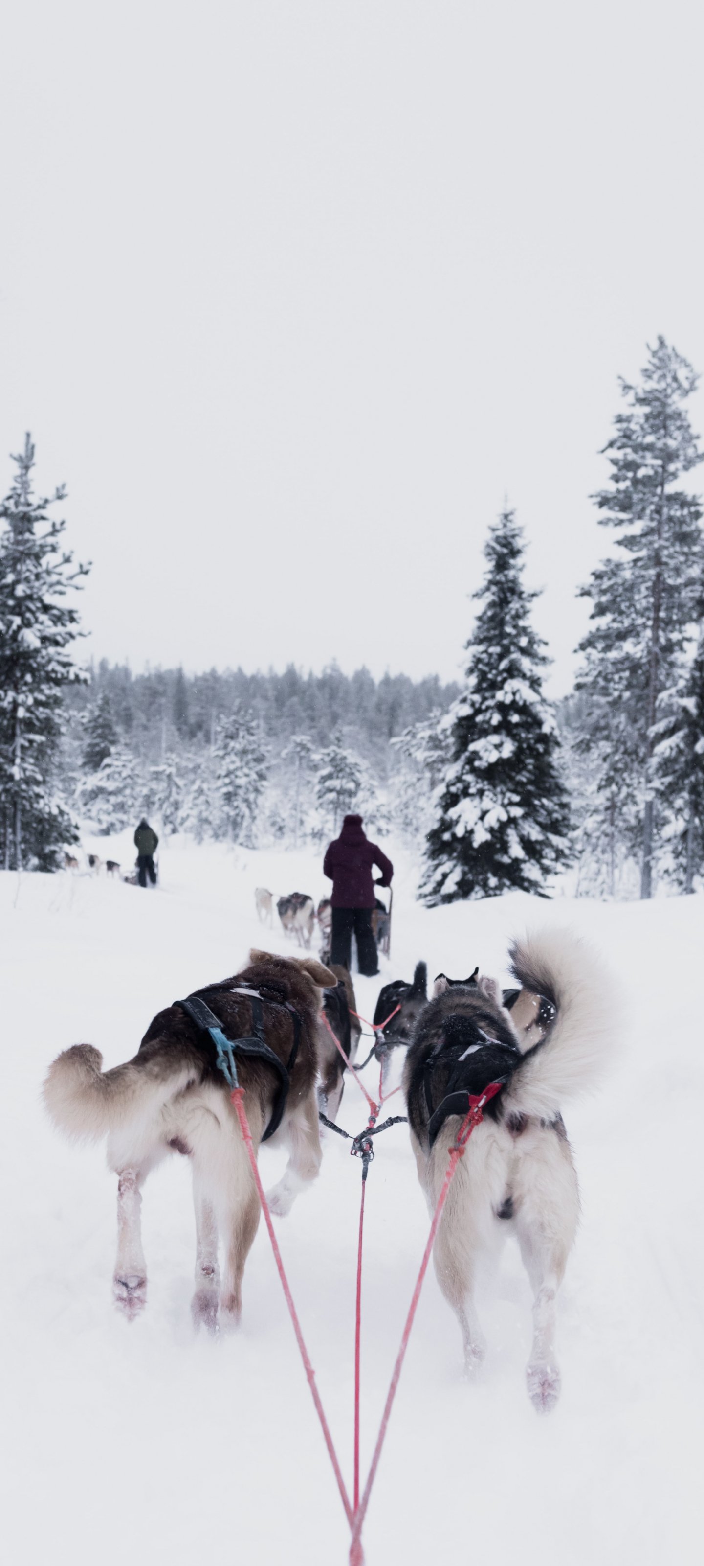 Обои: хаски, упряжка, зима - 1440x3200