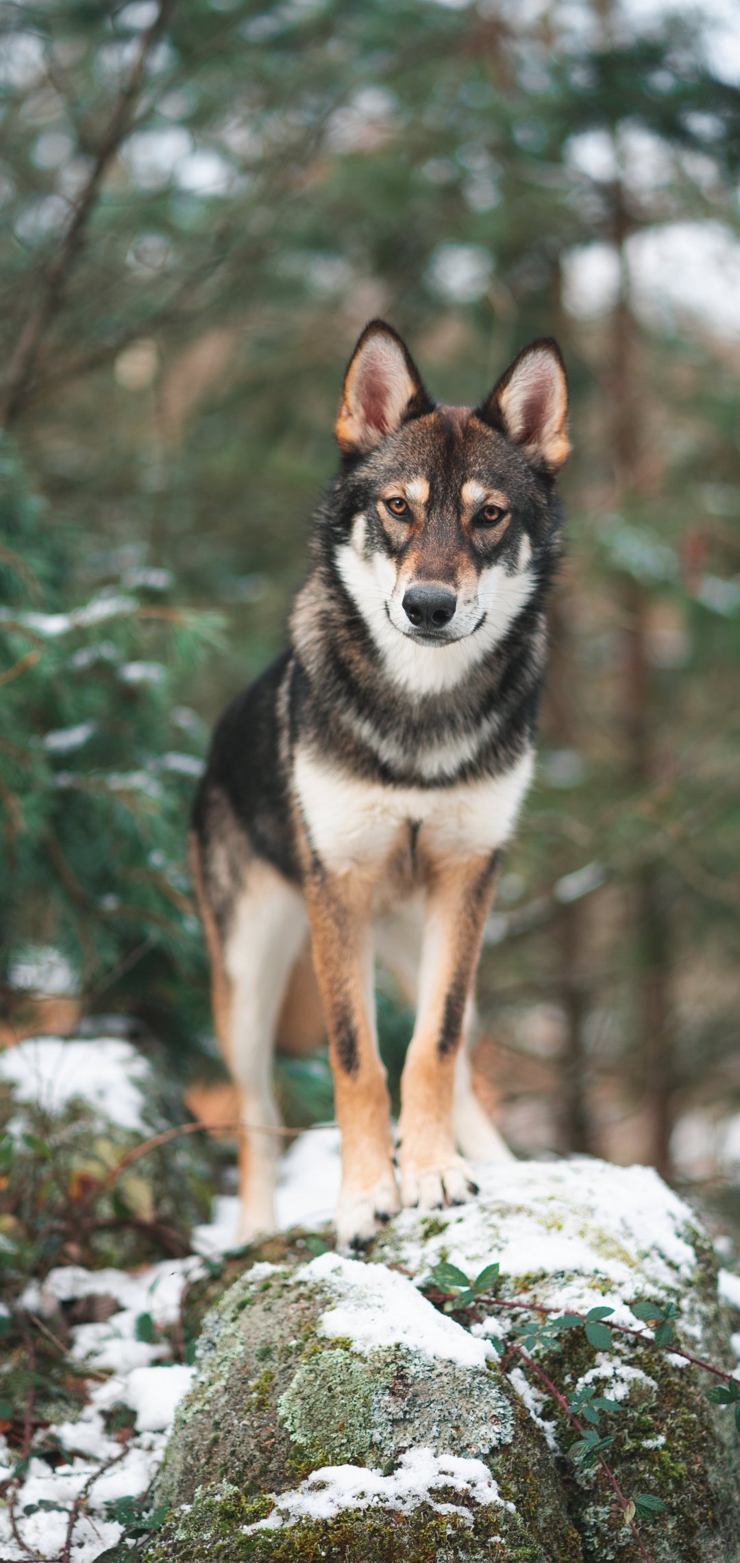 Обои: собака, зеленый, лес - 1080x2280