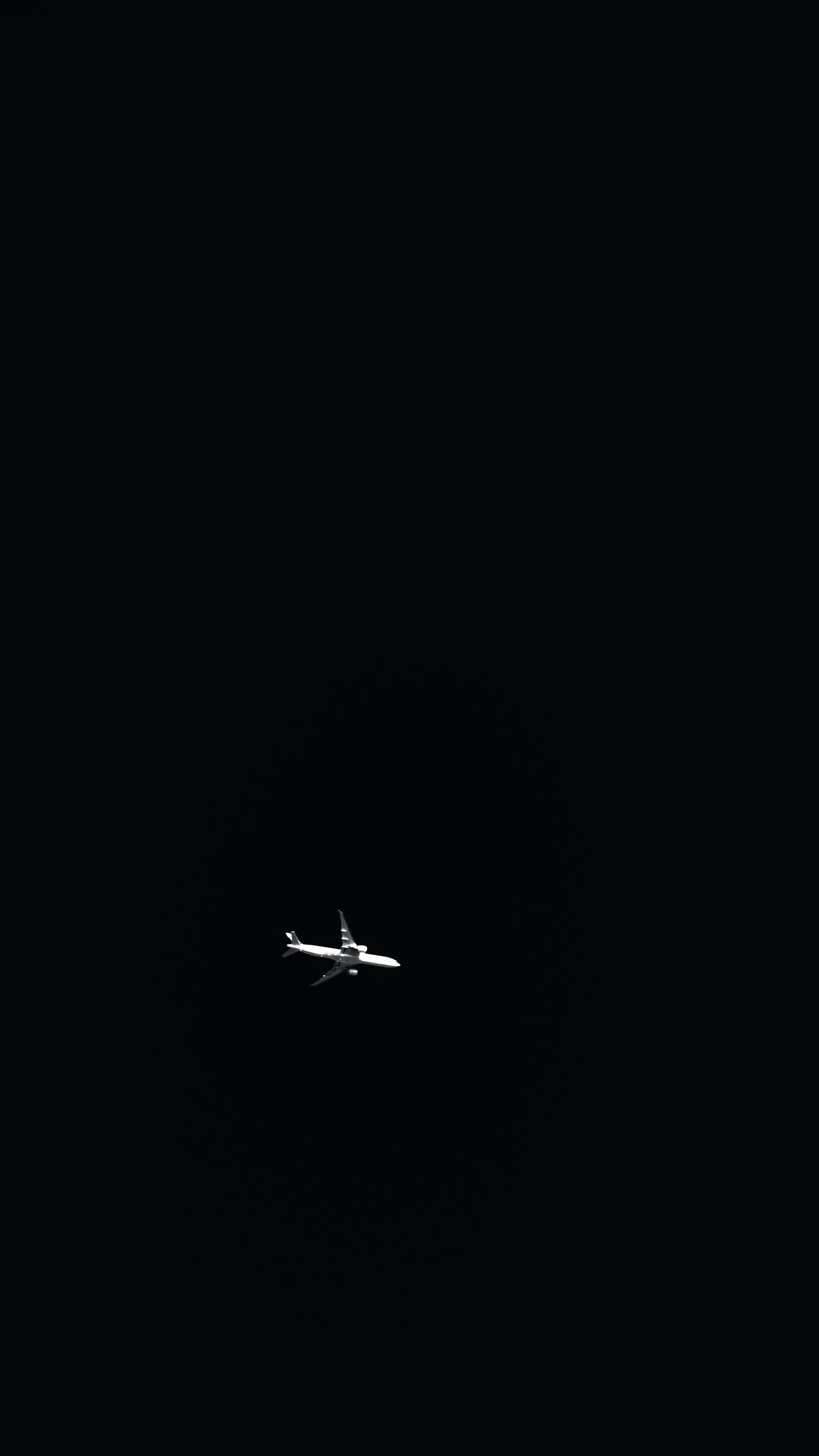 Обои: самолет, ночь, черный фон - 2160x3840