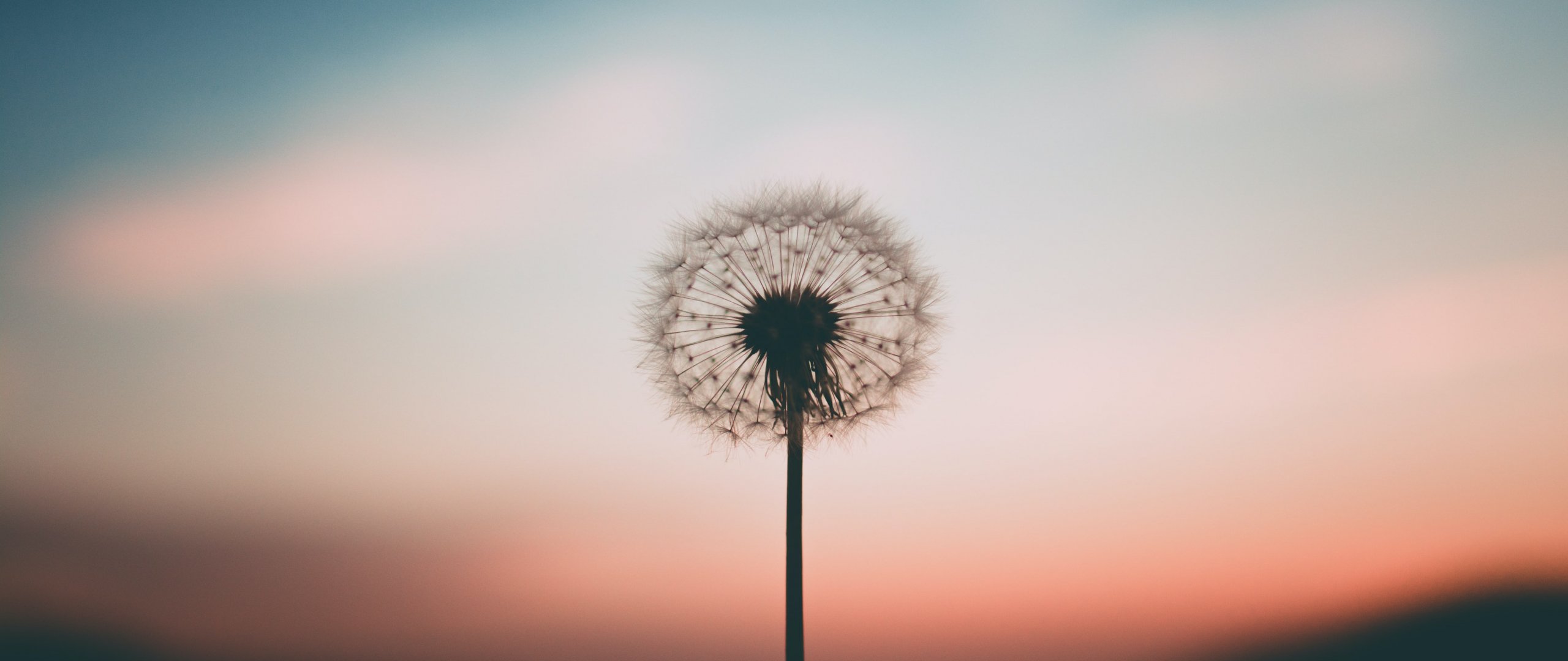 Обои: одуванчик, закат, небо - 2560x1080