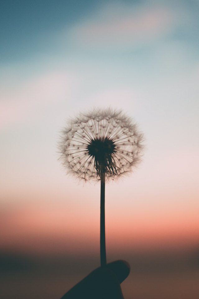 Обои: одуванчик, закат, небо - 640x960