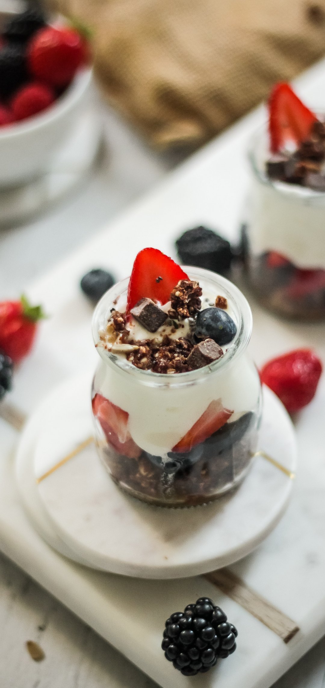 Обои: десерт, клубника, панакотта - 1080x2280