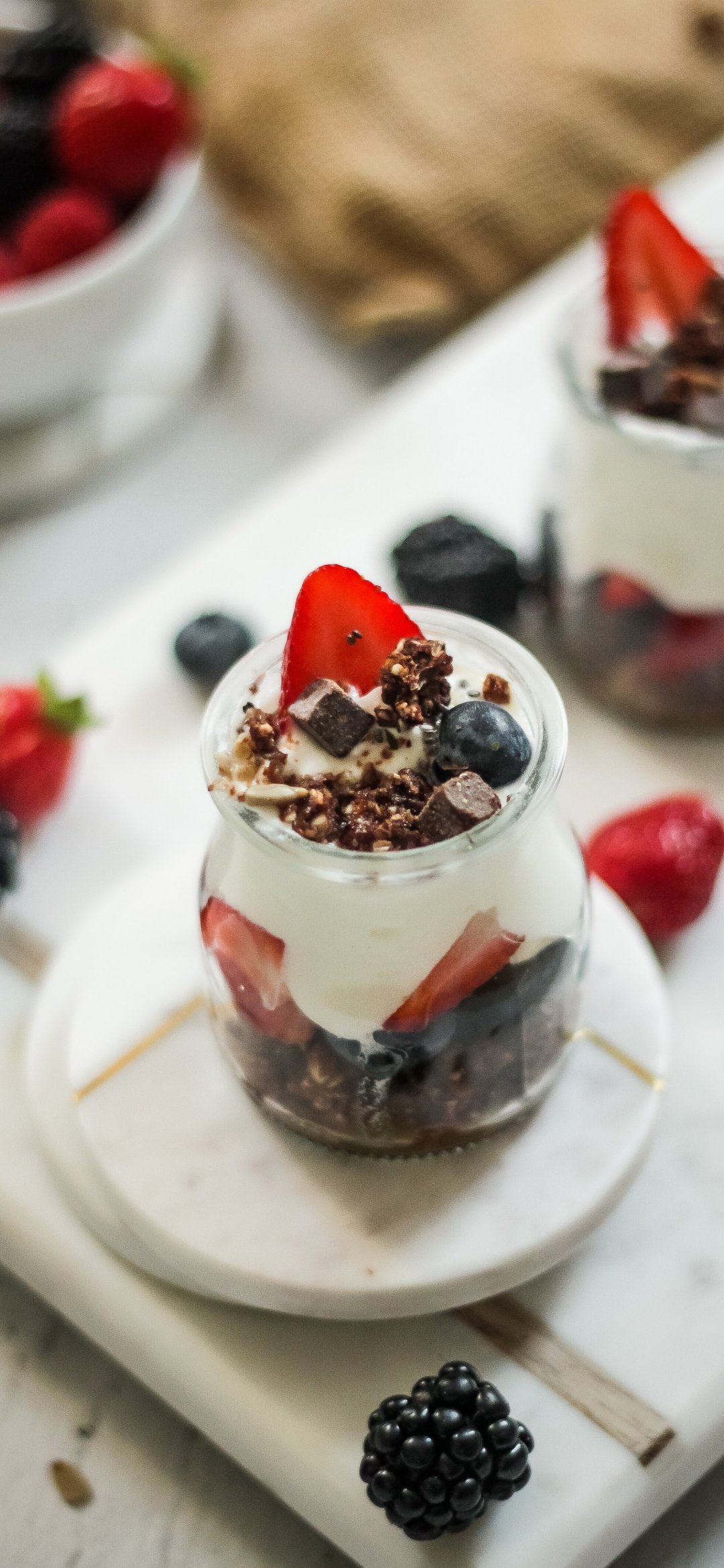 Обои: десерт, клубника, панакотта - 1080x2340