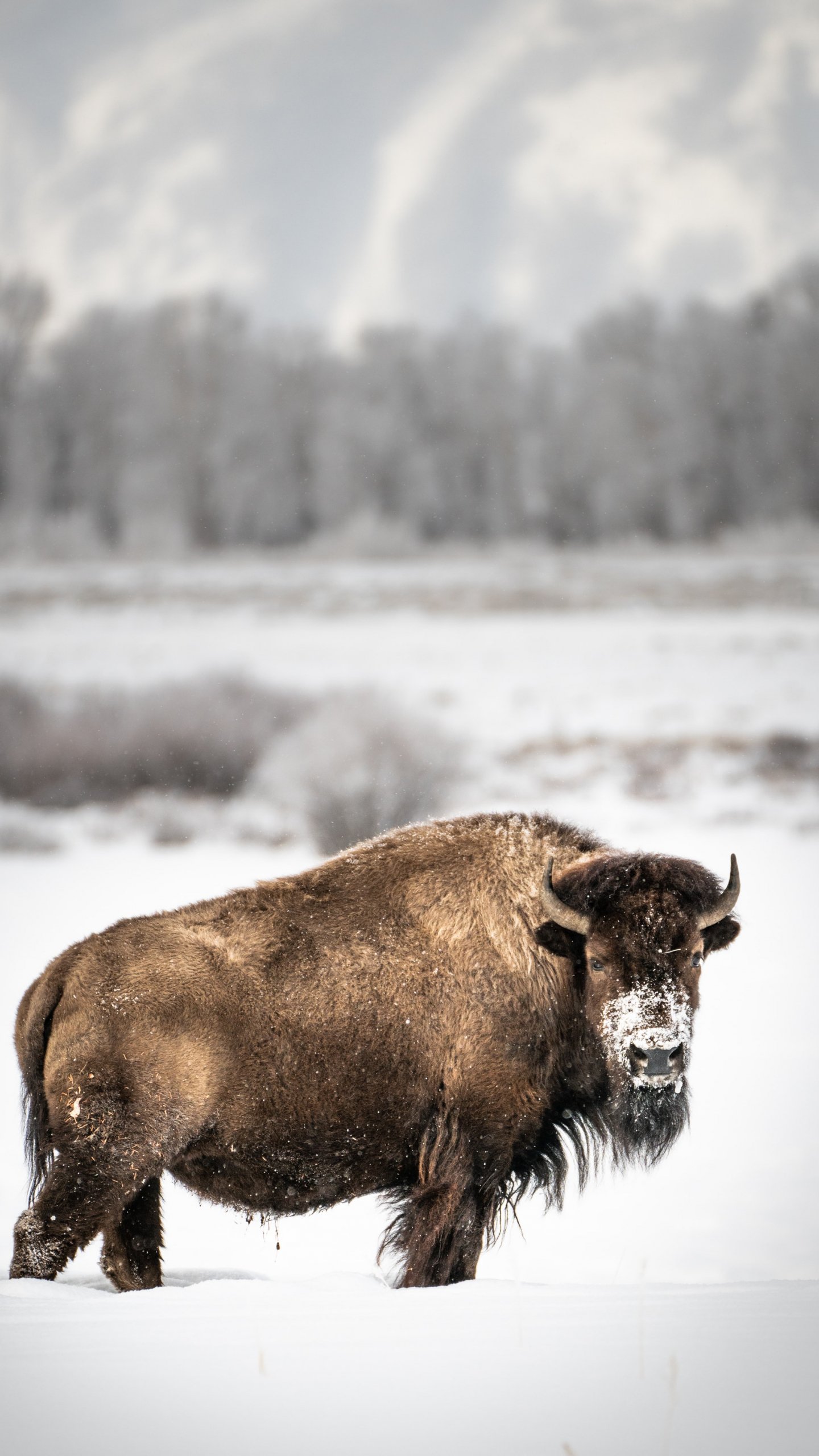Обои: бизон, зима, снег - 1440x2560