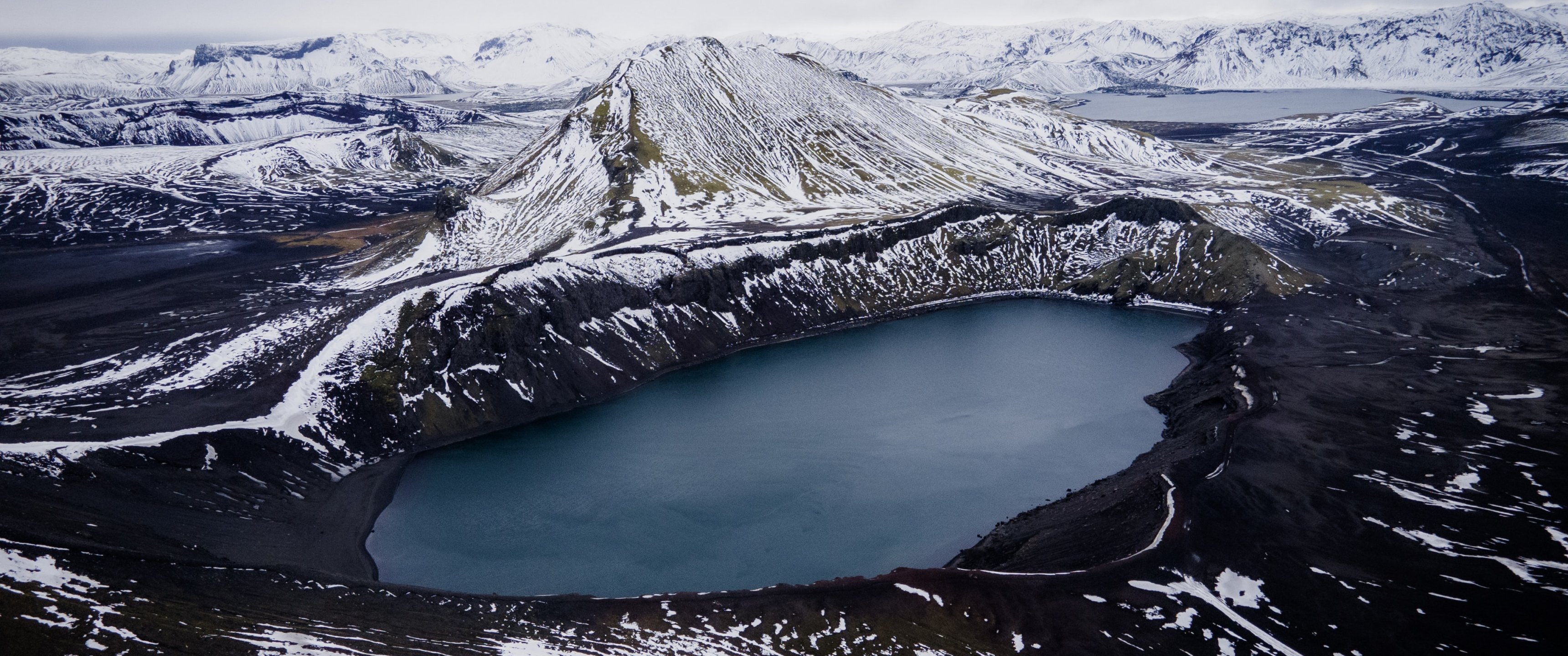 Обои: Исландия, горы, озеро, снег - 3440x1440