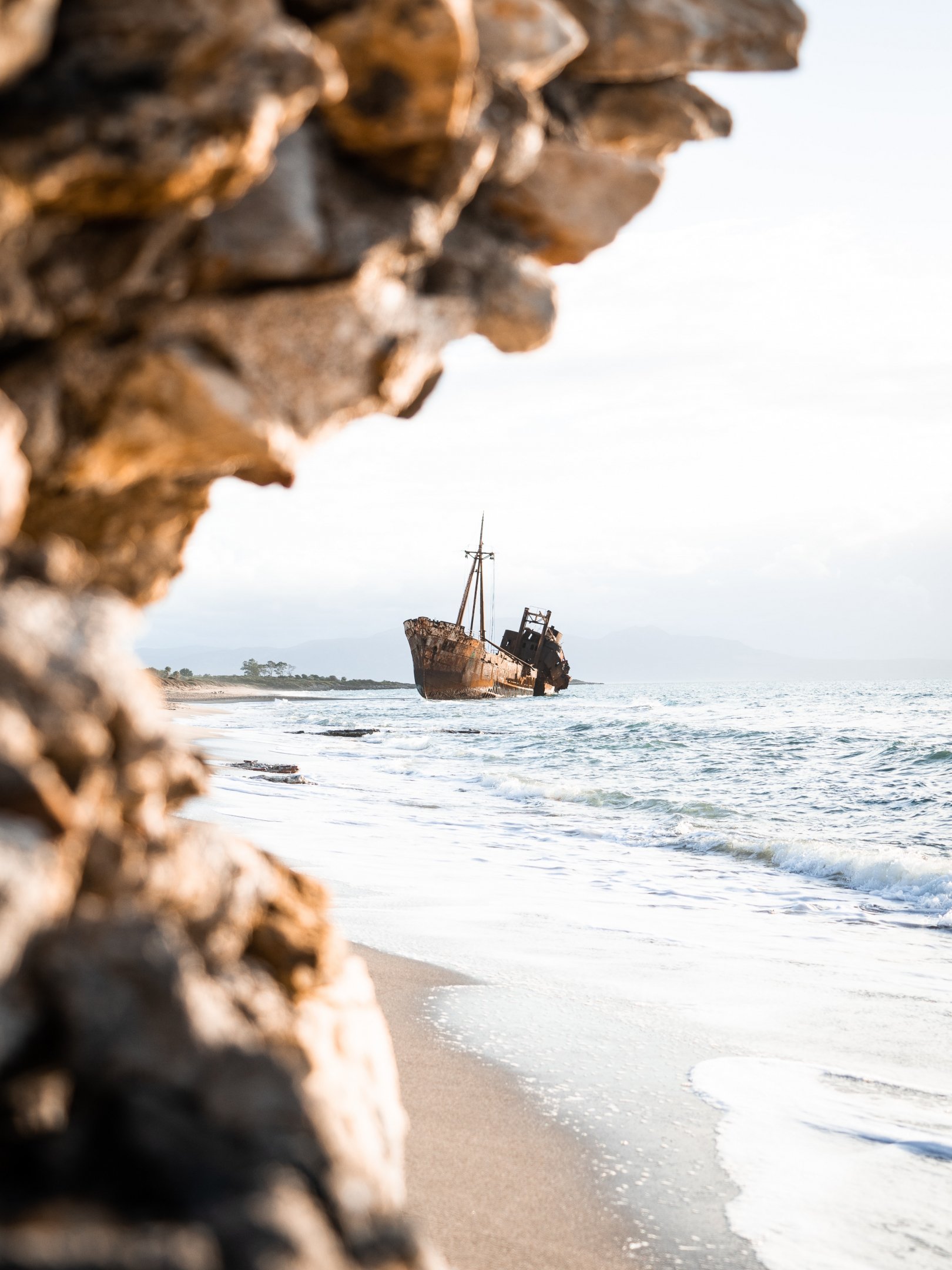 Обои: корабль, море, скалы, берег - 1620x2160