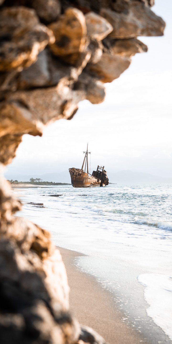 Обои: корабль, море, скалы, берег - 720x1440