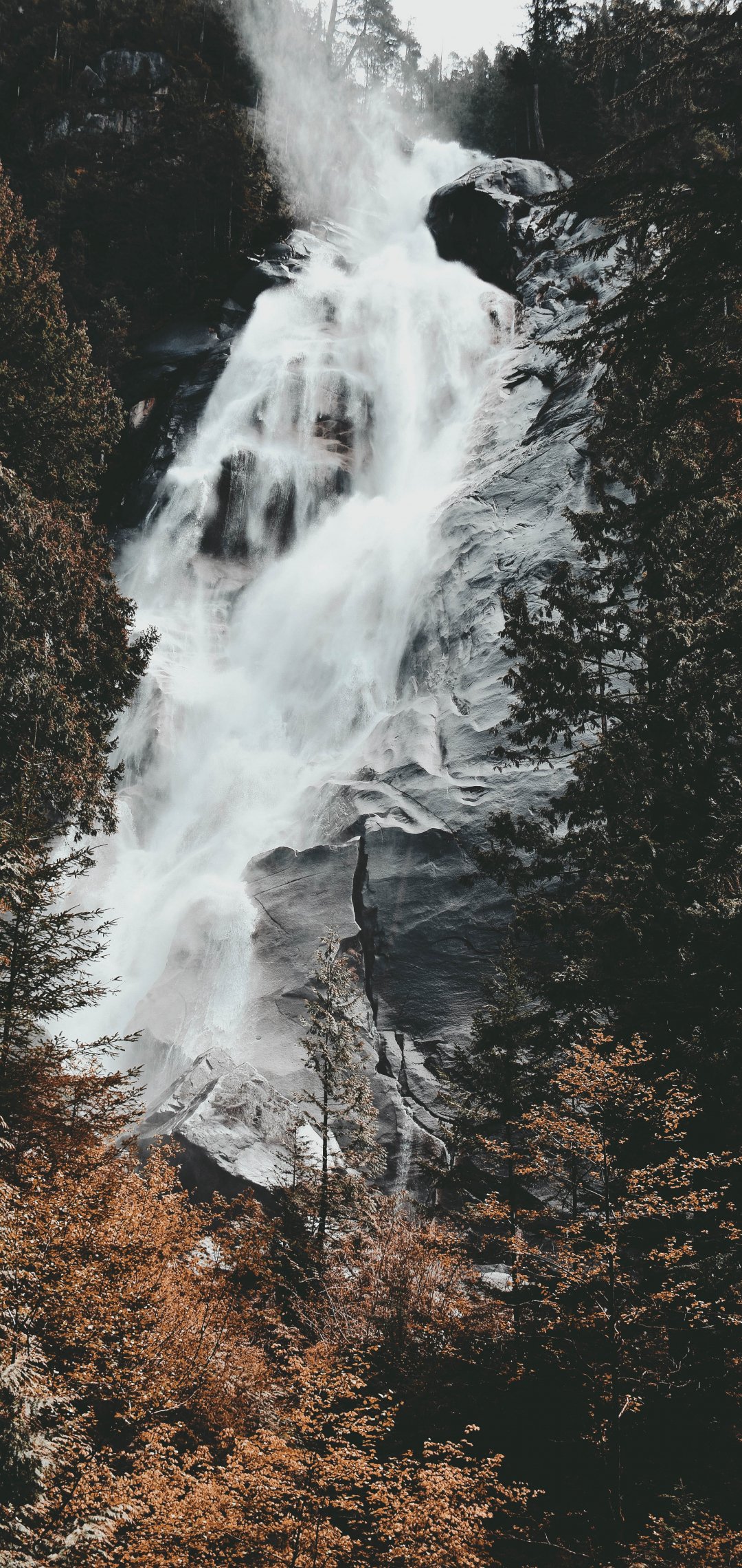 Обои: водопад, горы, деревья - 1080x2280