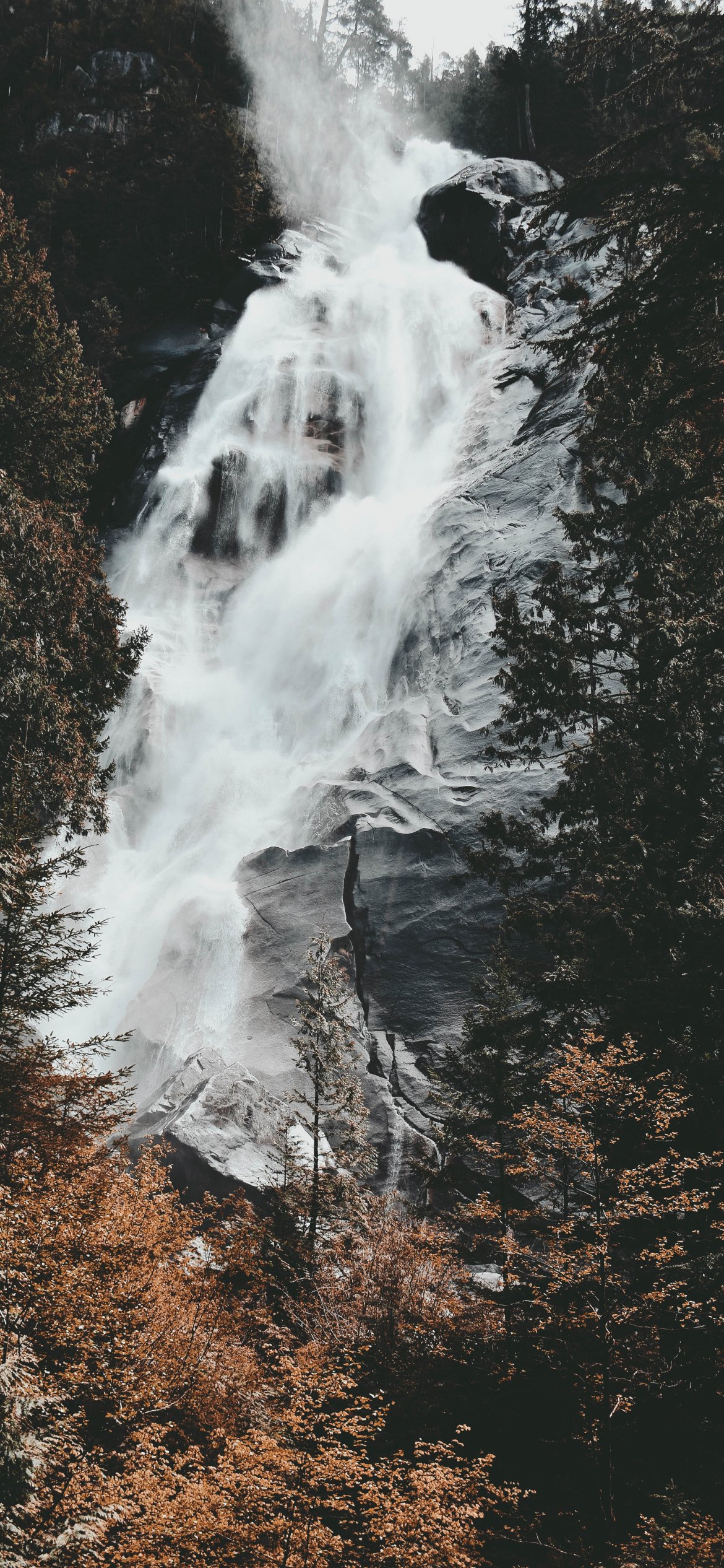 Обои: водопад, горы, деревья - 1170x2532