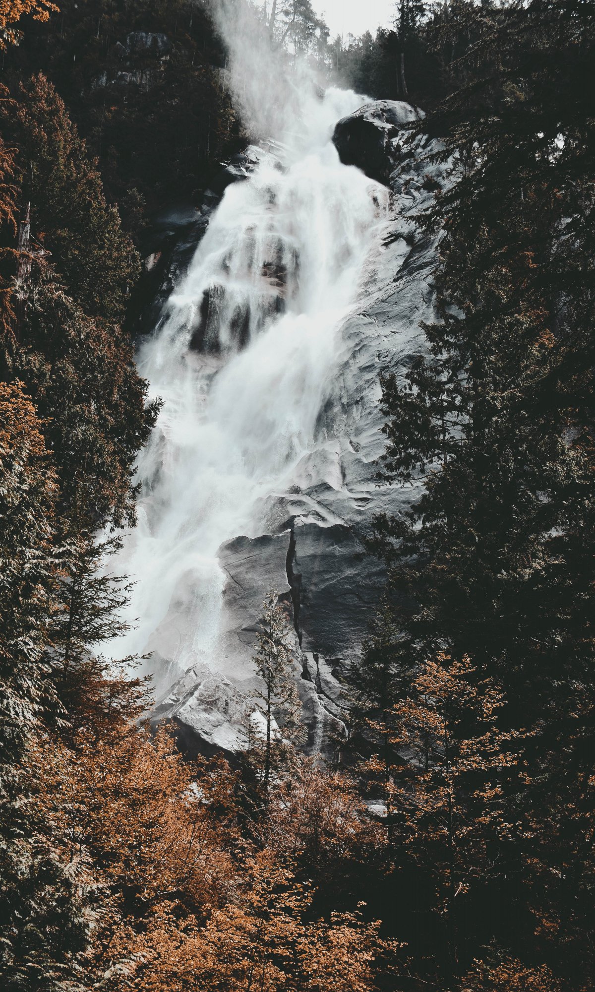 Обои: водопад, горы, деревья - 1200x2000