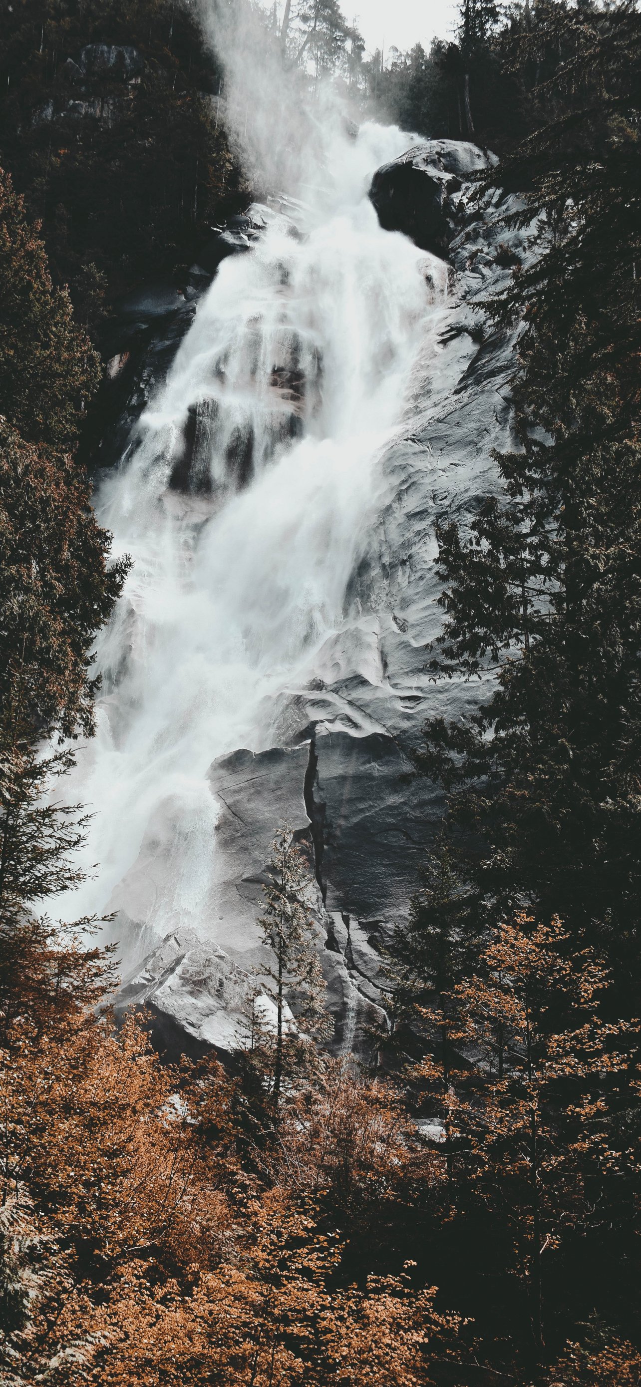 Обои: водопад, горы, деревья - 1284x2778