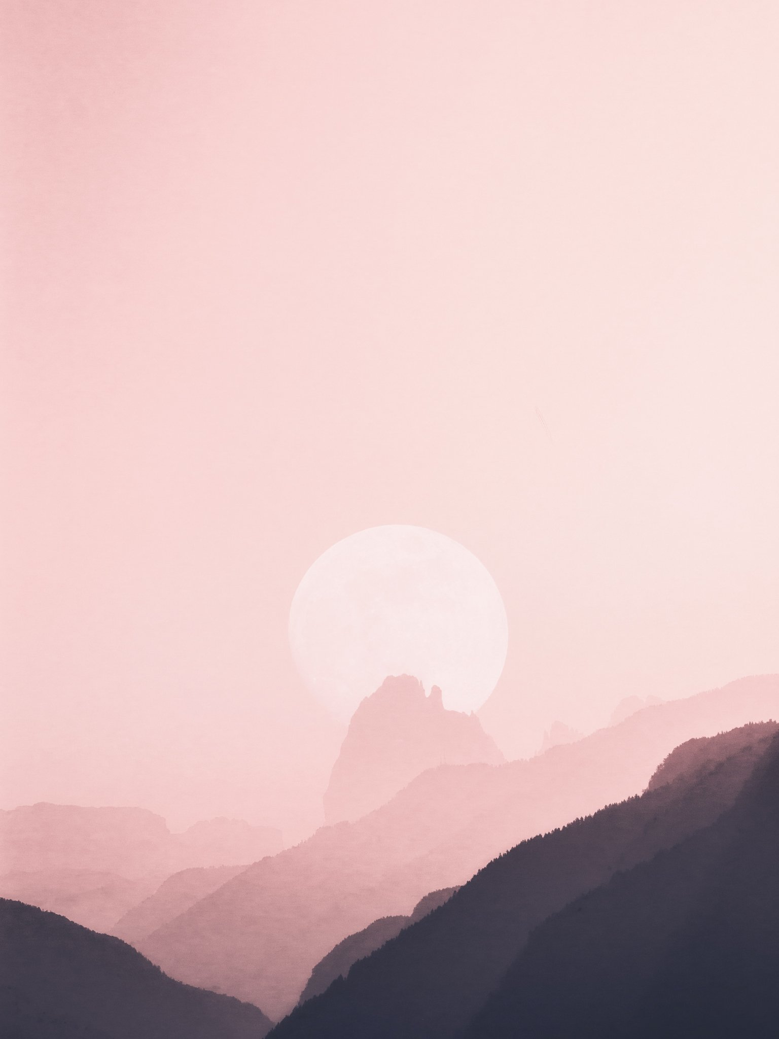 Обои: небо, горы, розовый, солнце - 1536x2048