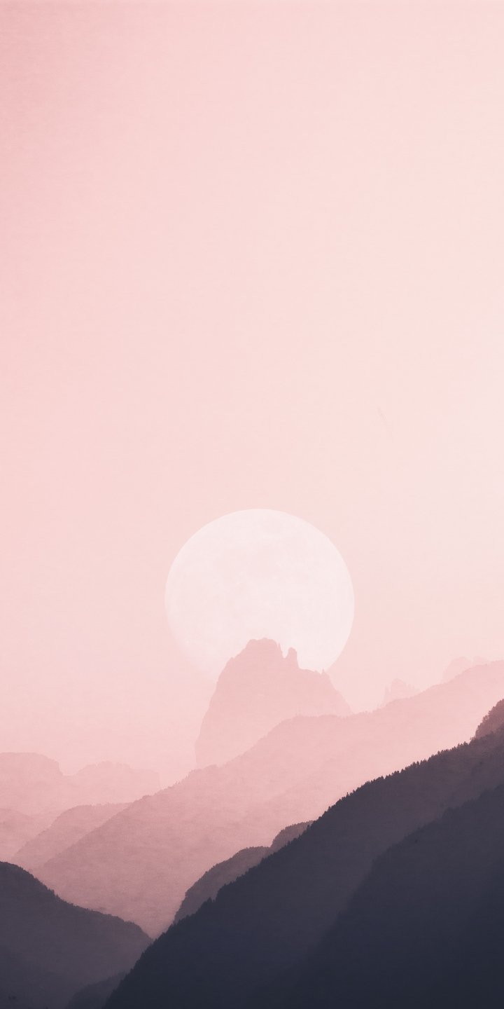 Обои: небо, горы, розовый, солнце - 720x1440