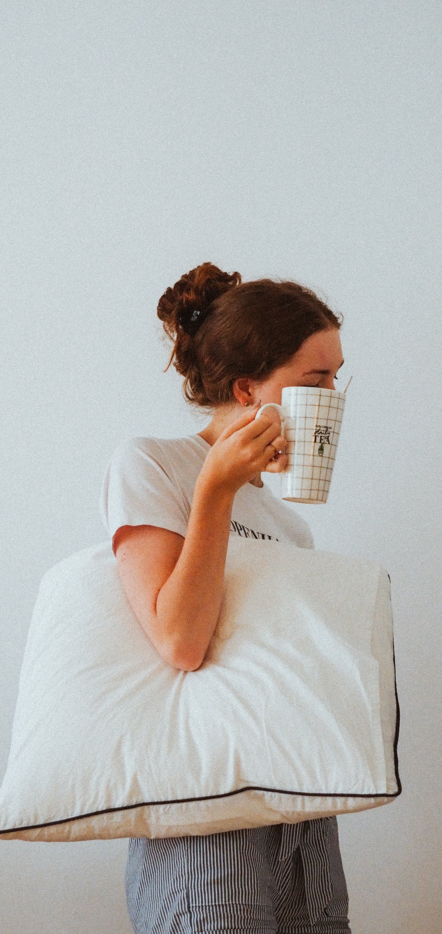 Обои: девушка, подушка, кружка - 1440x3040