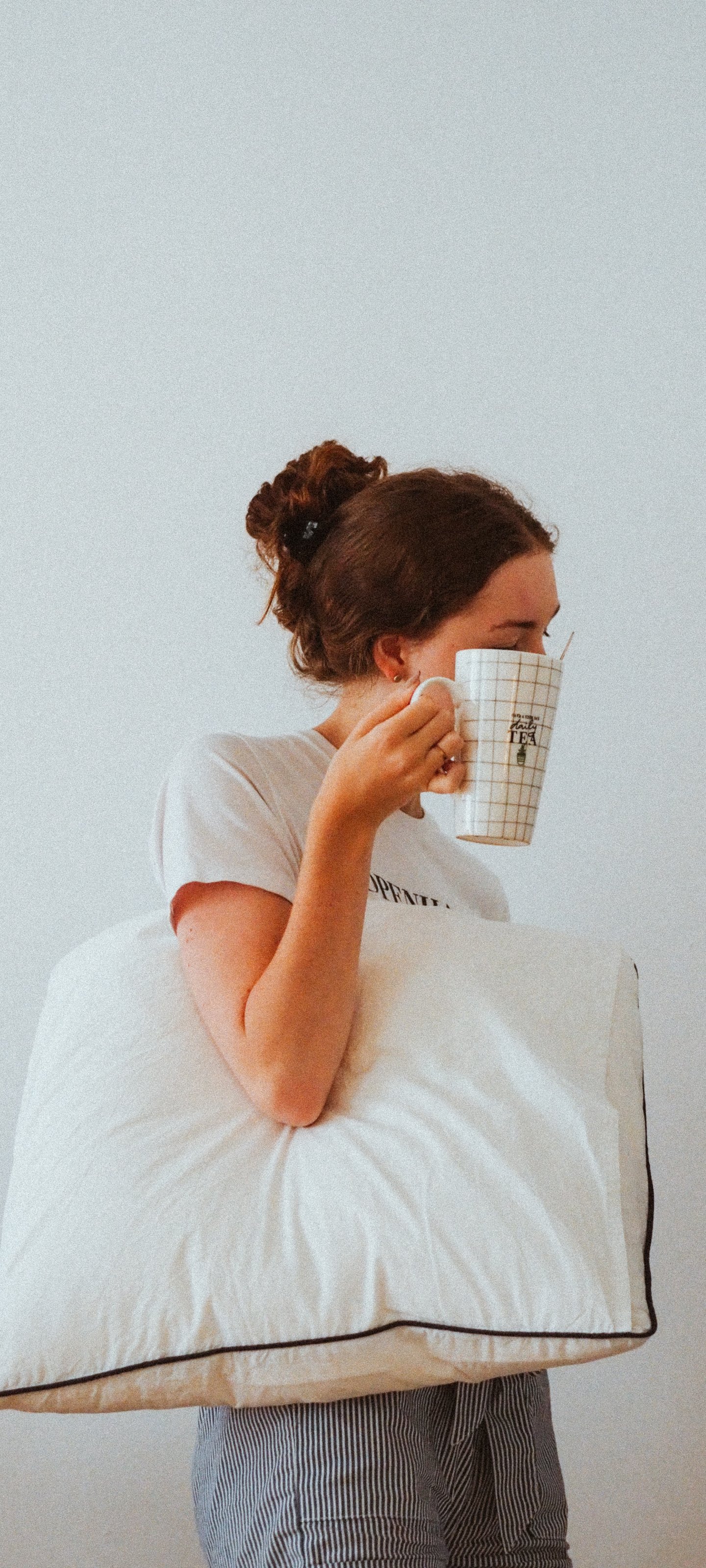 Обои: девушка, подушка, кружка - 1440x3200