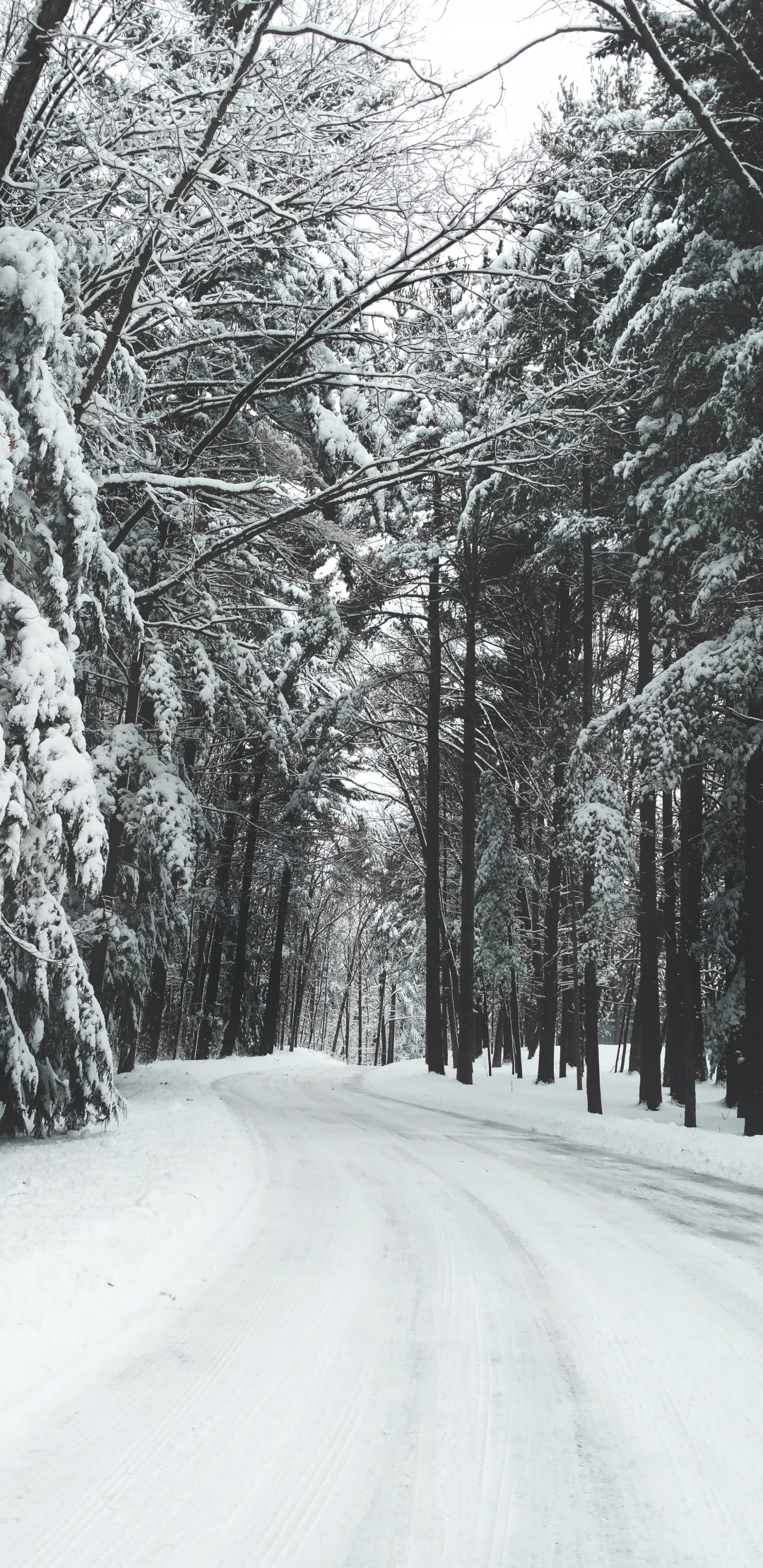 Обои: лес, зима, снег, дорога - 1080x2220