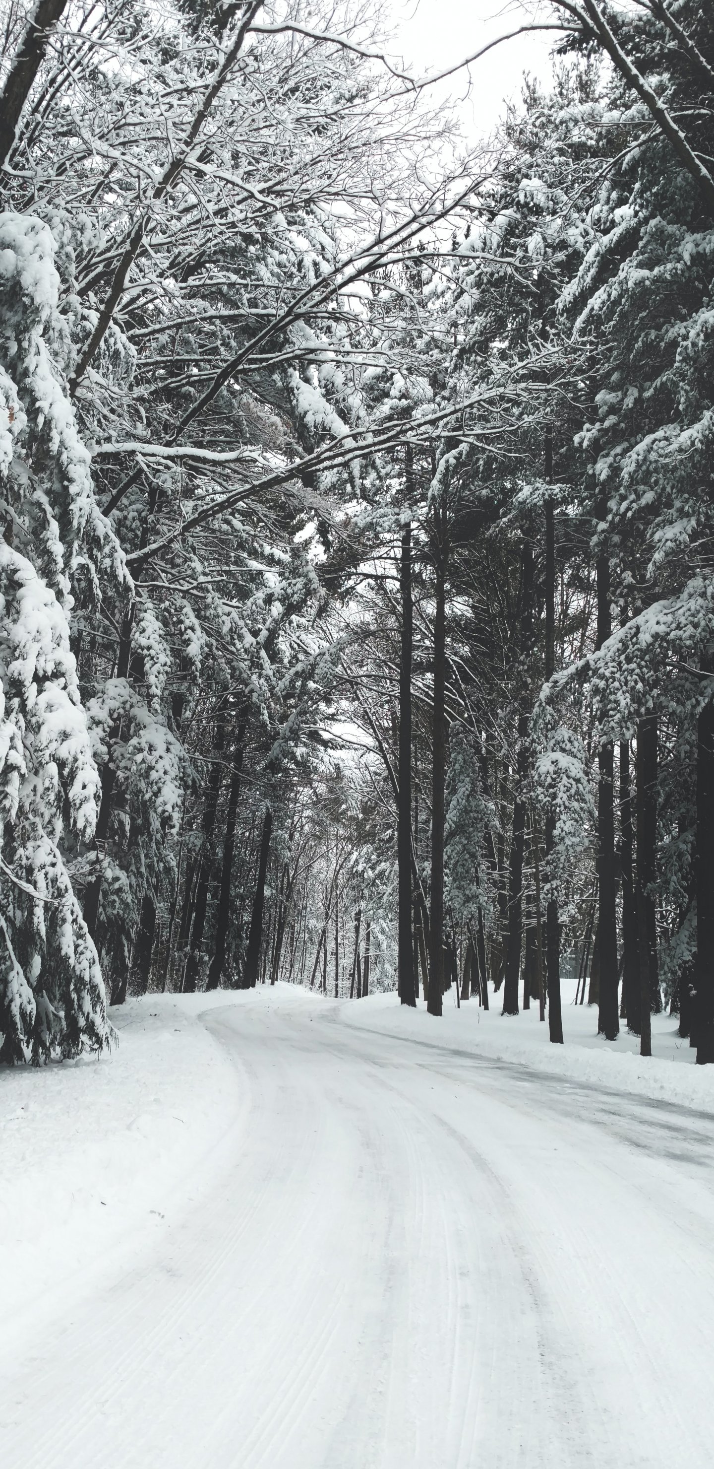 Обои: лес, зима, снег, дорога - 1440x2960