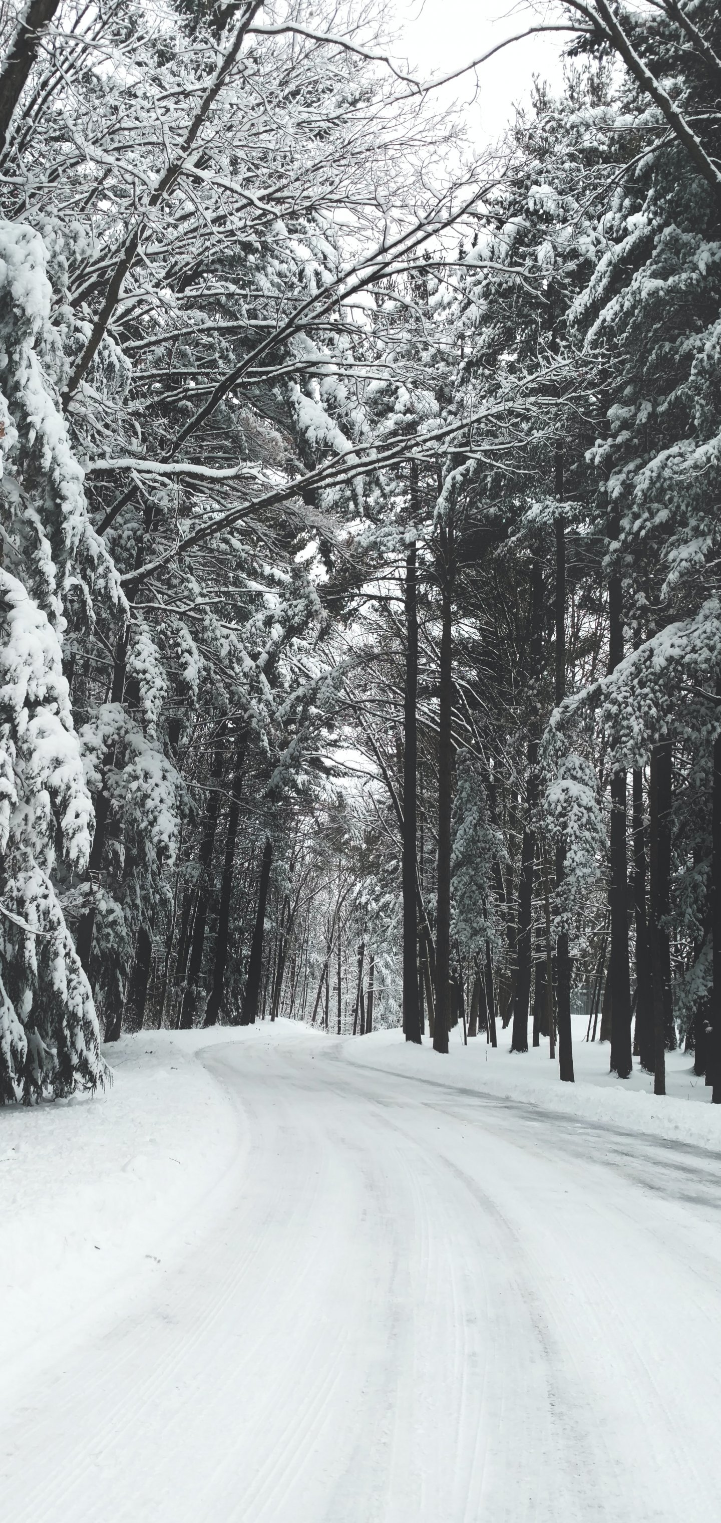 Обои: лес, зима, снег, дорога - 1440x3040