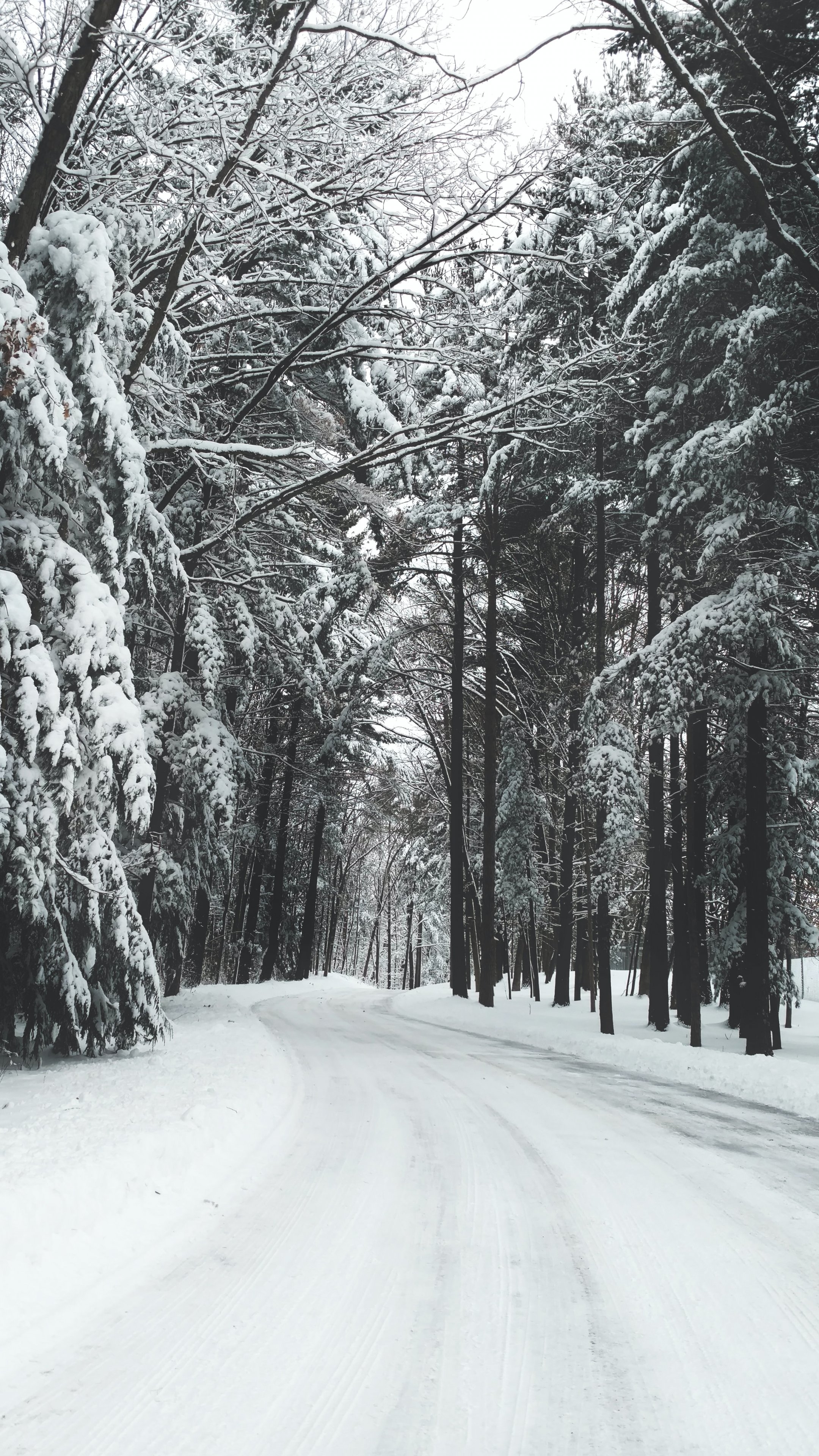 Обои: лес, зима, снег, дорога - 2160x3840
