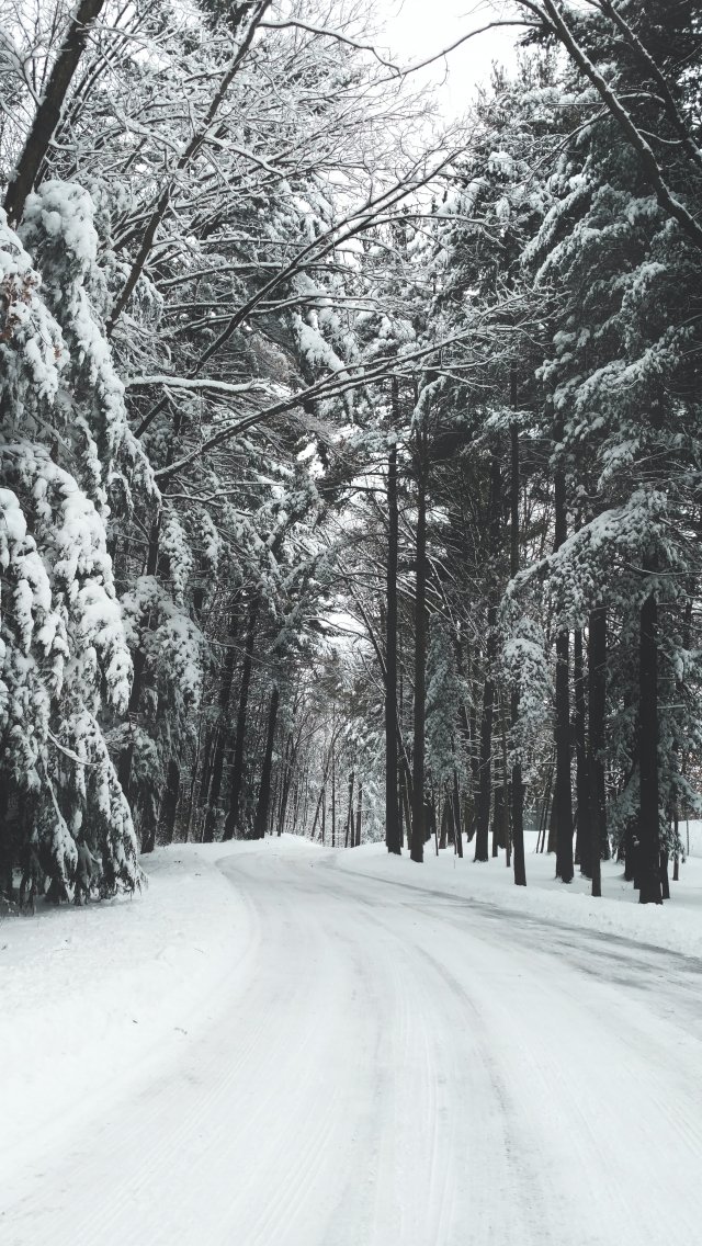 Обои: лес, зима, снег, дорога - 640x1136