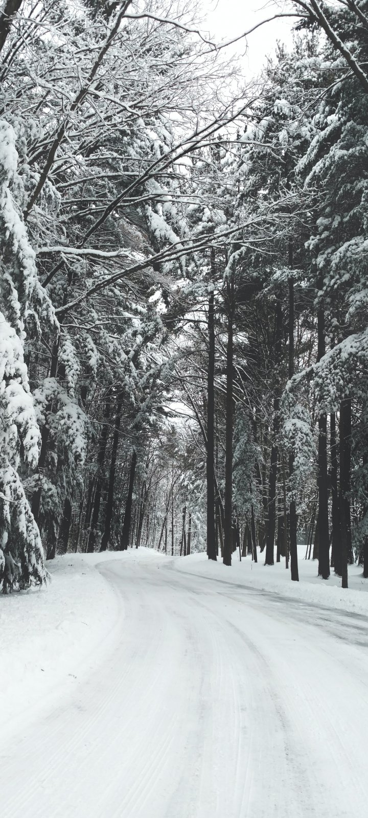 Обои: лес, зима, снег, дорога - 720x1600